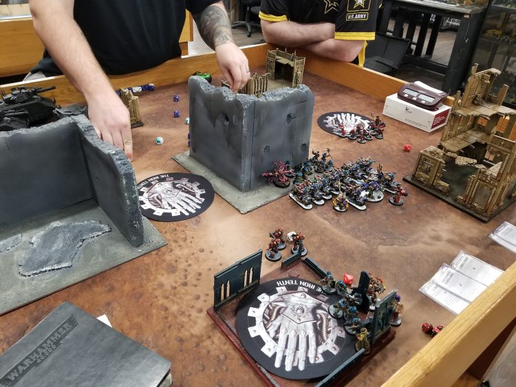 - Engineers (I can put one squad of Cultists out of reach from his Thunderfires, which should help me score those 4 points).