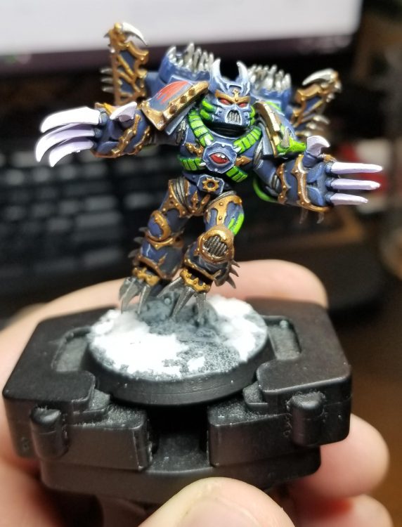 I want my third Obliterator to look different from the other two, so I convert him using the bits from a plastic Helbrute. I works pretty well, I think! Unfortunately that time means I'm not able to finish my last Warp Talon. Not the end of the world since I have a sub, but it does mean I have work to do when I get home.