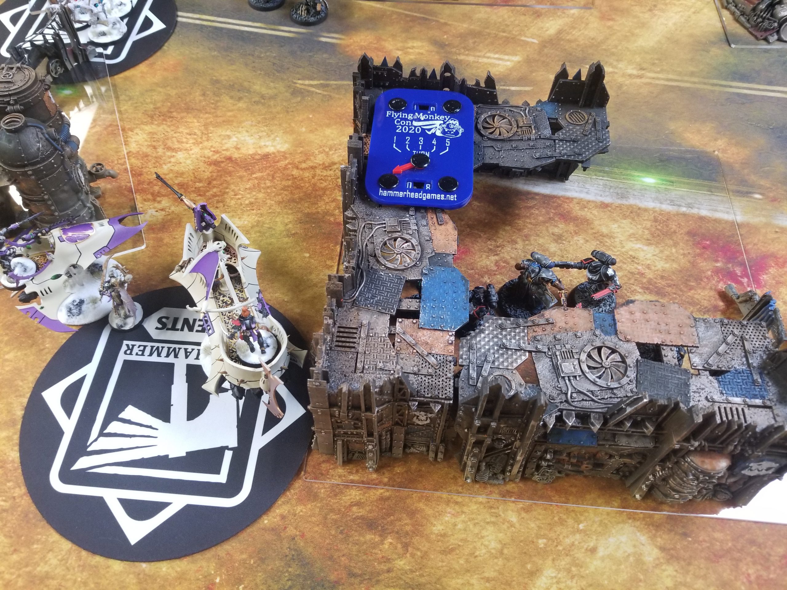 Credit: Dan Boyd and James "Boon" Kelling1:40 - Round 4 is officially over and Dan and Boon finally called it, with Boon winning 87 - 69 (nice). Dan put up a great fight and got off some MONSTER rolls with his Librarian but ultimately James' strategy of "just ignoring the Redemptos" paid off and he managed to stay ahead on primary objectives all game.