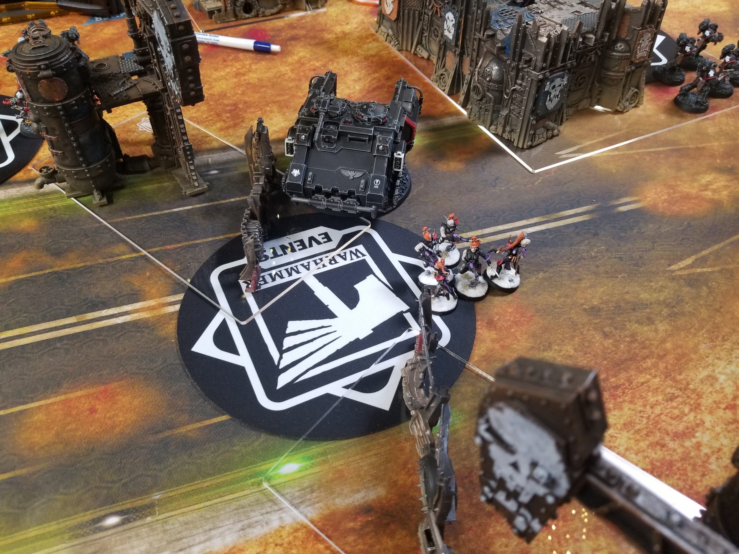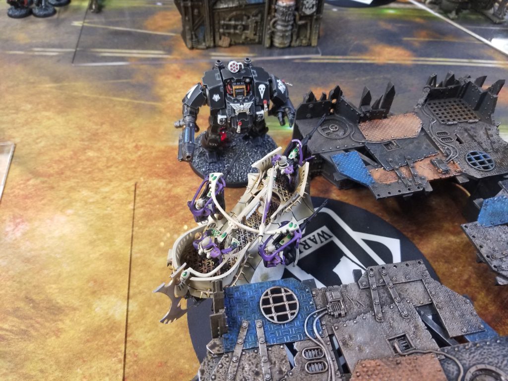 Also Dan is going crazy over at his table. He just spiked a huge roll to kill Boon's Succubus. Right before this he charged Boon's Archon with his Phobos Librarian, scored 3 wounds, and then the Archon promptly failed his second shadow field save and ate two wounds for five damage and died. The shadow field is the worst 2+ save in the game and I'll die on this hill.