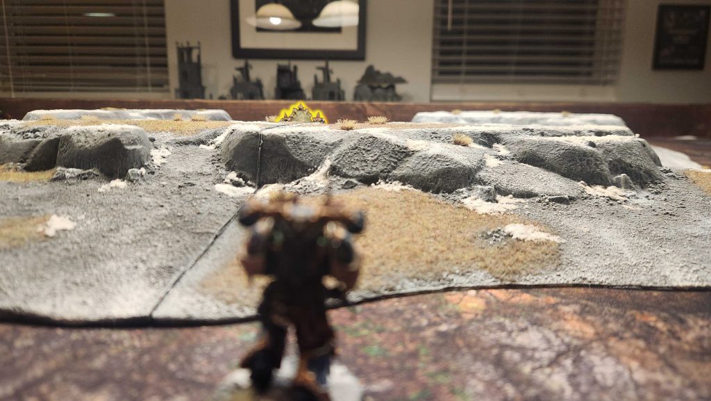 Even when you're using one of the large Games Workshop hills, those only really hit 3" in height with their added rock outcrops, and as you can see in the photo above where I've highlighted the model, that's not enough to even block line of sight to a Myphitic Blight Hauler, a relatively low-profile vehicle. That's a problem given that hills don't directly block line of sight.