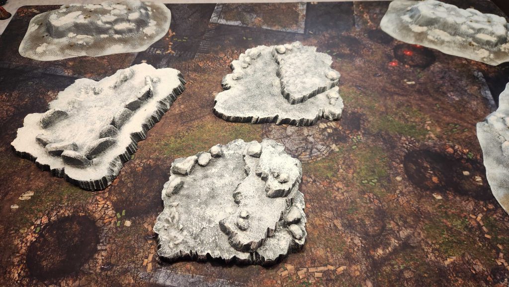 You can also mix and match these with ruins and other terrain features to create more complex features that get that vertical feel across but still act as decent places to place minis and can be suggestive of a cave-in or collapse.