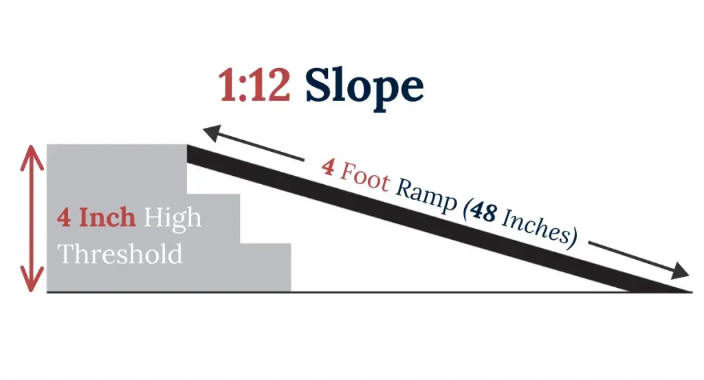 So solving this problem is relatively straightforward: You need longer slopes to compensate for the height of your hills. A good rule of thumb here is to use the guidelines for reliable ramps set forth in the Americans with Disabilities Act. These call for a 1:12 slope for commercial ramps used in public spaces and a 2:12 slope for residential ramps if space is limited. The former gives you 5 degrees of incline and the latter about 10 degrees of incline.