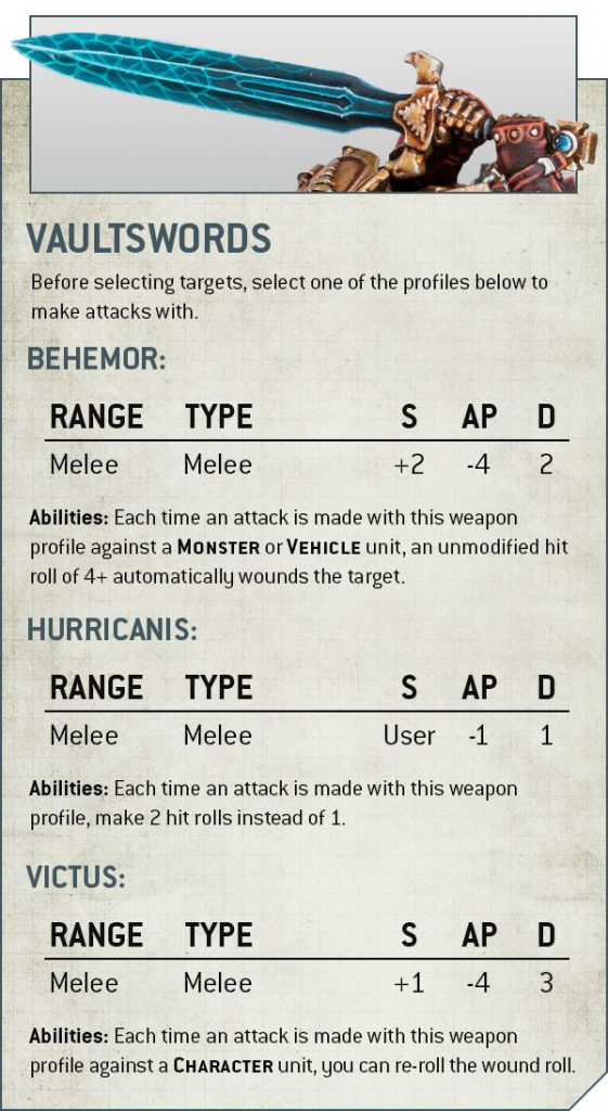 Shadowkeeper Allarus Custodes. Credit: PendulinAllarus Custodians have changed the least here, with pretty much the same statline as before other than the weapons normalising to D2 rather than Dd3, and the Guardian Spear going up to S+2, which I suspect makes it the choice above the axe a lot of the time. The only surprising thing about the datasheet is the unit size, which is now 1-6 models. It is possible that this is Shadow Throne only, designed to let you use these even if you've built characters with some of them, but if that's a general change it's interesting - not as busted as it would have been with ROD compared to Retrieve Nachmund Data, but plausibly still a useful quirk for some lists.