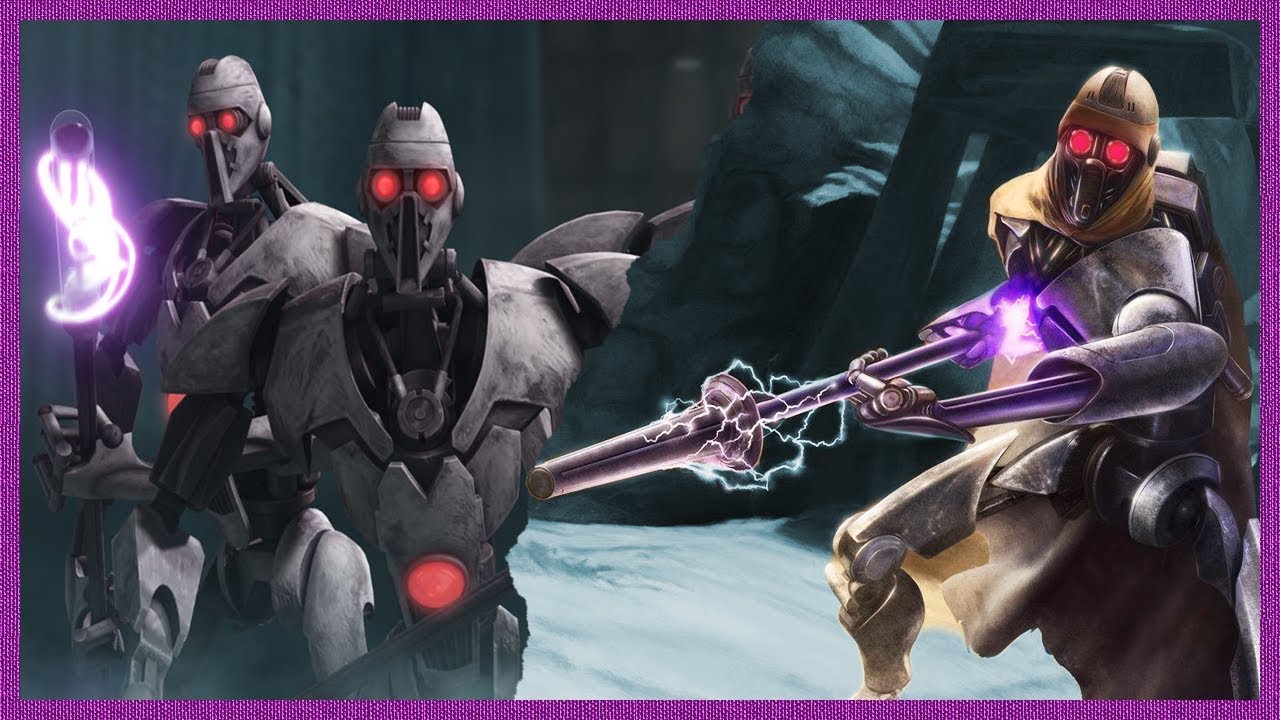 Magna Guard in the Clone Wars cartoon - copyright Lucasfilm.Magna Guard are bodyguard droids for important Separatist personages like General Grevious and Count Dooku. The Star Wars Legion Magna Guard have a whole range of weapons. In the films and Clone Wars series we see them with and without cloaks (and I really question the utility of them having cloaks anywhere they don't need dust/sand covers) but the Shatterpoint ones stick to the cloaks and don't have the option to build them without them, which I would personally have liked.