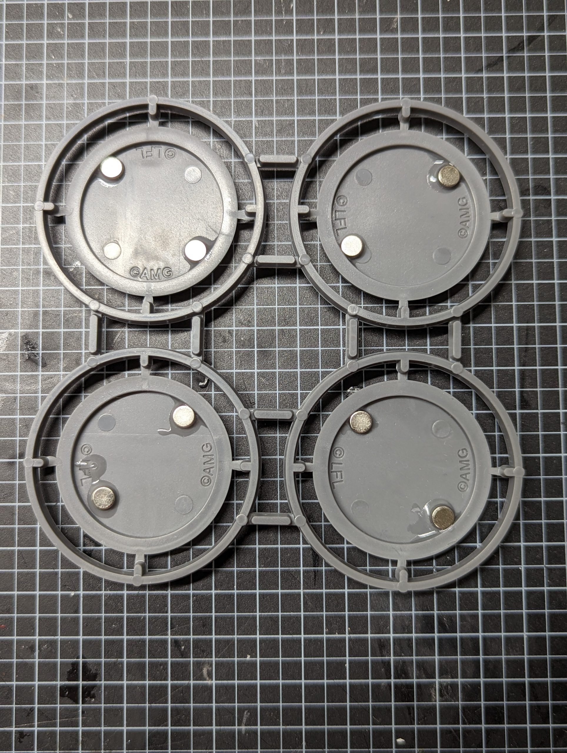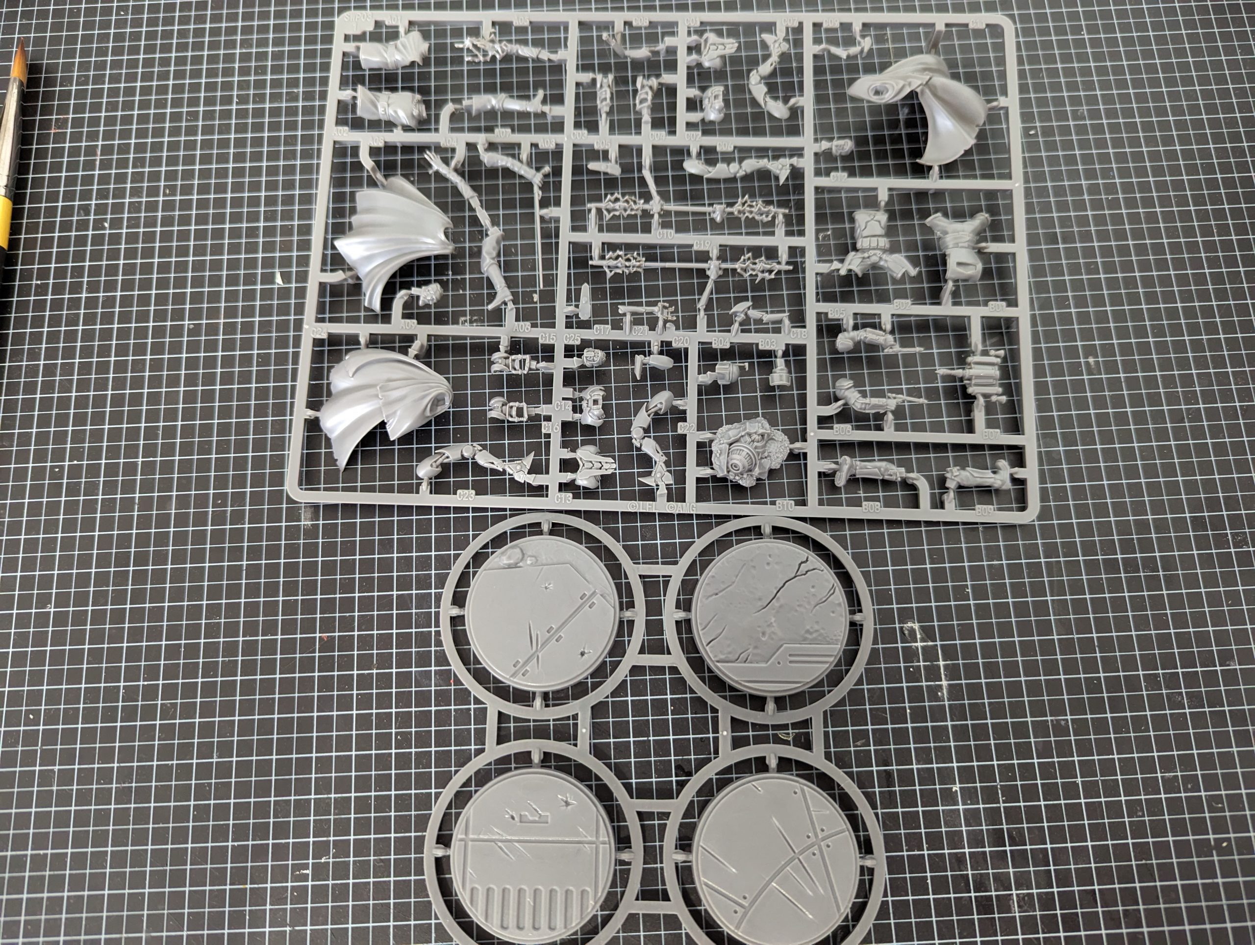 Twice the Pride Sprue - credit ThundercloudI started with putting magnets on the bases with gorilla glue prior to touching anything else. These models will be stored in magnetic trays and two magnets per base should be enough to prevent them sliding around and getting damaged. The lightsabers are long and thin and I don't want to chance them with foam trays. Being long and thin they'll likely be a pain to repair, so better not to break them in the first place.