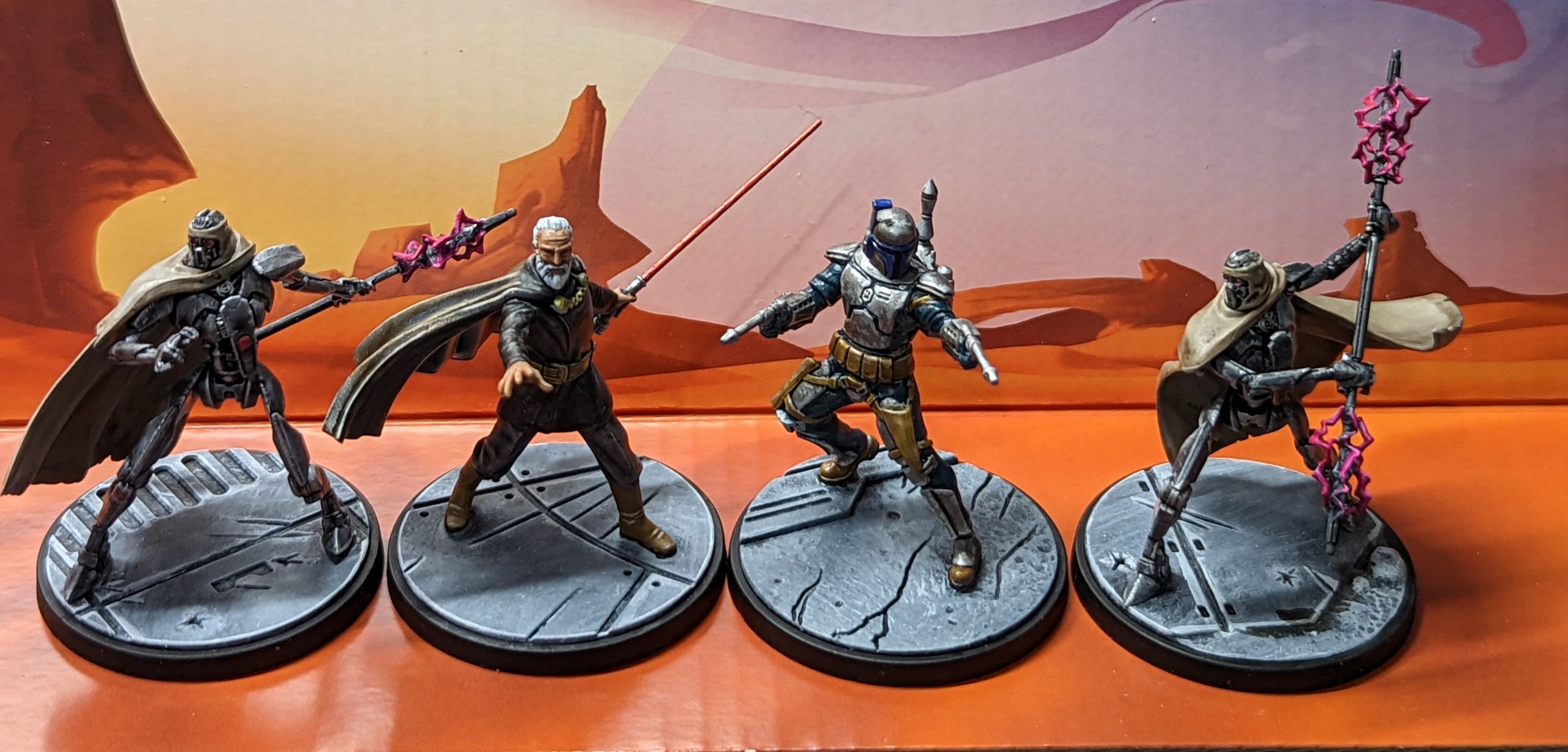Jango I liked most as a miniature, as I have a soft spot for Mandalorian/the Fetts in terms of miniatures/costumes in the films/series. I'm hoping it will be possible soon to run a non-Jedi all Mandalorian/Bounty Hunter force (I know one bounty hunter primary is coming, but we need two). Jango is the miniature I'm happiest with the paint job on.