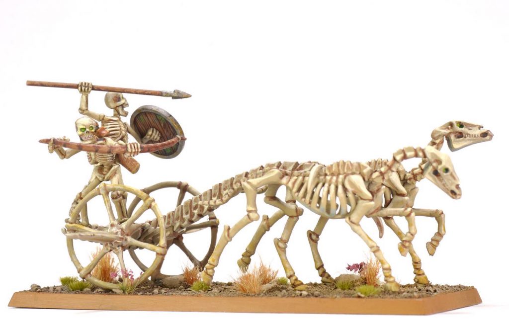 This month also saw building and painting of the classic Skeleton Chariot. I got into Warhammer in the late 90’s with a fifth edition Undead army. This was one of the models I never got at the time, but manages to snag this one new in shrink at a reasonable price. The old kit holds up well. I did some minor alterations to the arms and spear to repose them how I wanted.