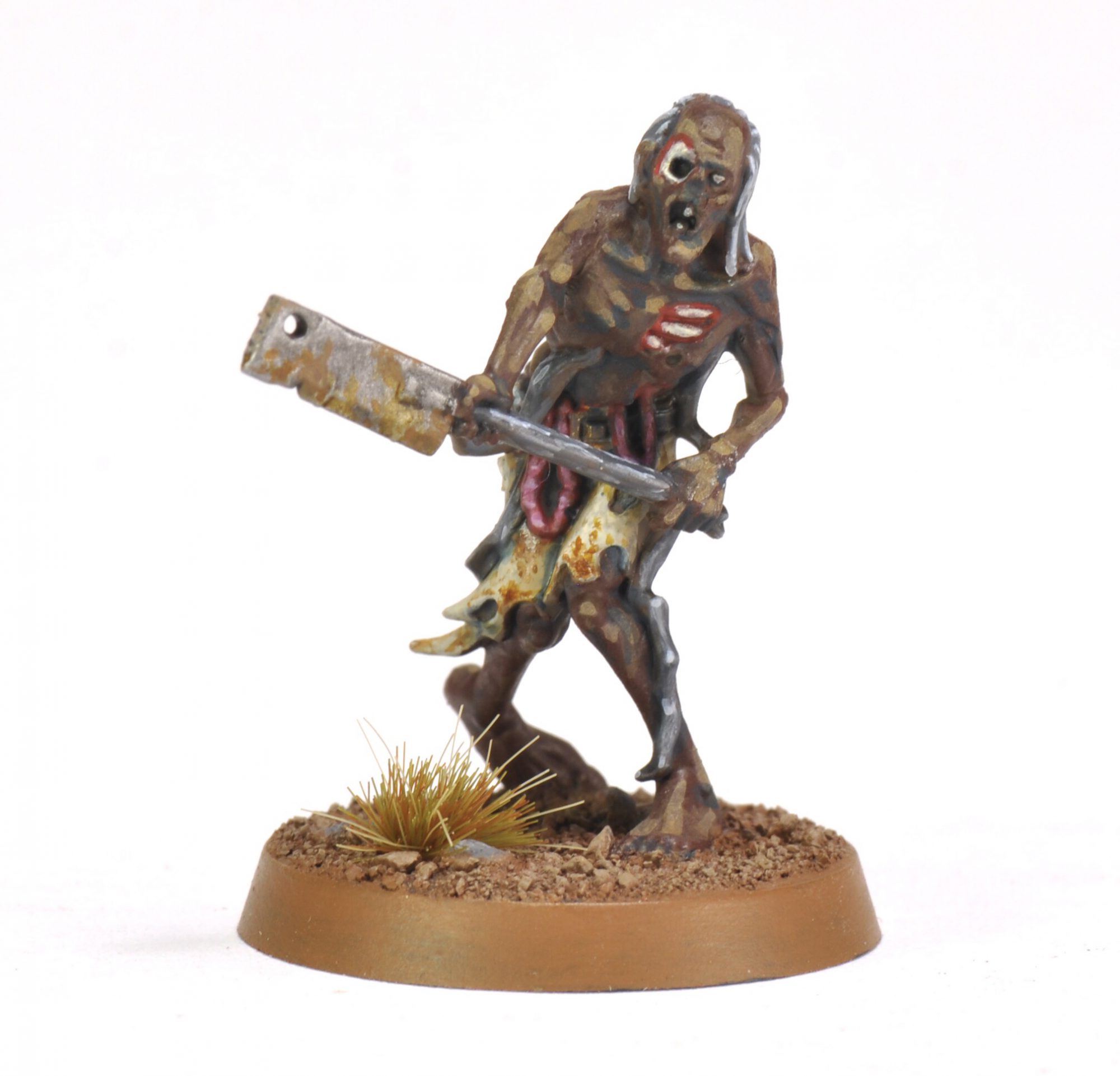This month I began painting those zombies I mentioned earlier. After doing a test model my goal was to break the process down into easily repeated steps. All skin the same color, all cloth the same color, all roots the same, etc.