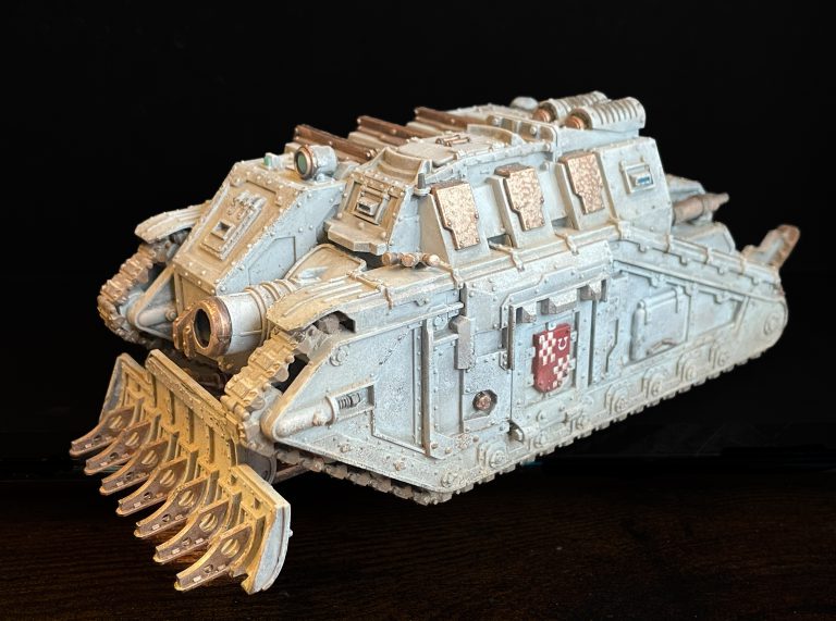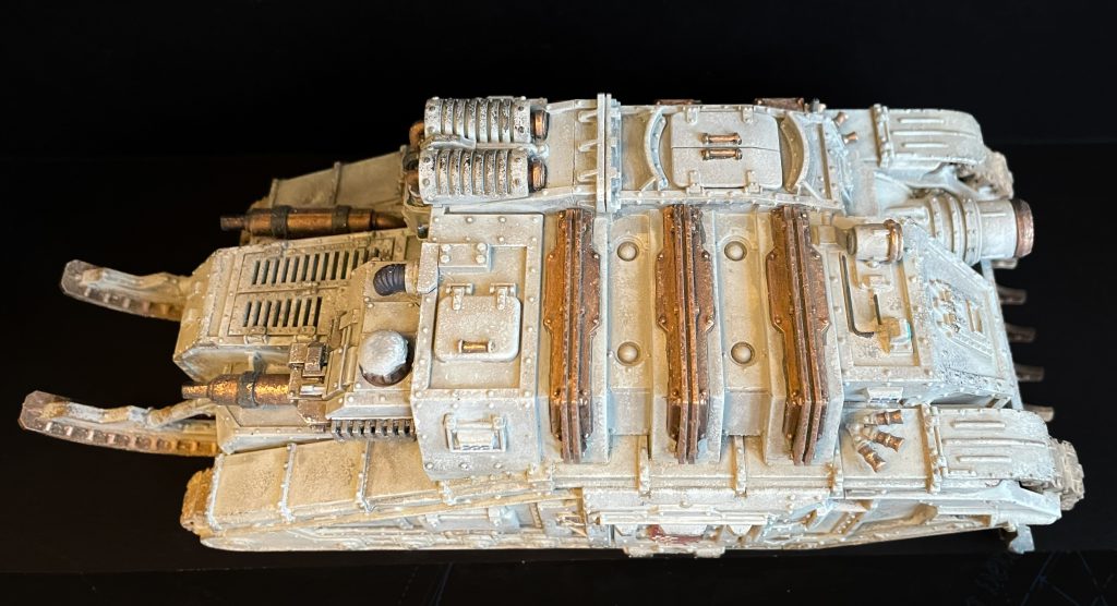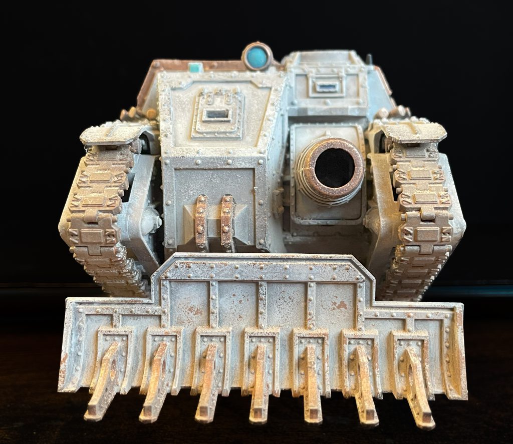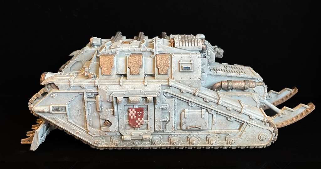 The Dracosan followed the same painting scheme as my Auxilia Leman Russ, with the WW1 inspired sky-blue paint scheme. Again, I didn’t paint the trim a separate colour, using a light Nuln Oil and Army Painter Dark Tone wash to pick out the under and overhangs to delineate the raised strips.