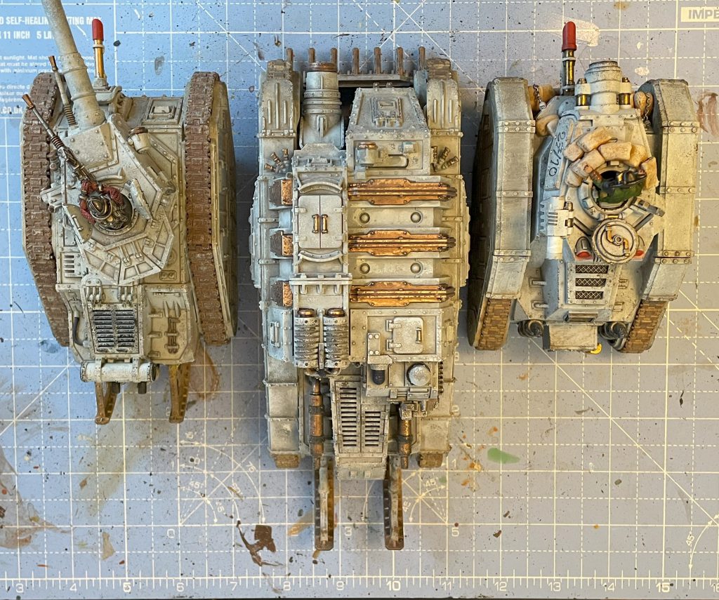 It's really big - Solar Aux Russ, Dracosan, Guard RussIn the same way as the Auxilia Russ, it’s clearly a 30k tank and clearly a Solar Auxilia tank. The now characteristic Auxilia trim is everywhere, it marries high and low tech elements well together in a cohesive dieselpunk whole, and, along with those changes to the classic square box ratio of the GW tank, these make it very obviously 30k and far different to the resin malcador chassis which is closer to a semi-historical 40k tank. A brick shithouse of a tank, solid and robust but still with clear flair and ornate detail is really aesthetically pleasing to me so at least personally the design is a massive win.