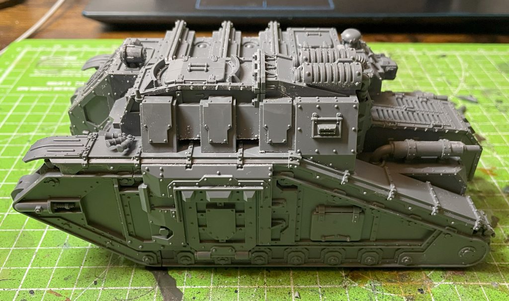 With something possessing this many edges, precise trim, large flat components and perennial tank issues like "gaps look awful", I would advise really taking your time with this build. Use clamps, elastic bands, gridded paper, anything you can because even though this is a modern GW kit with all the indents, keys and instructions that entails, this was a nightmare to get lined up.