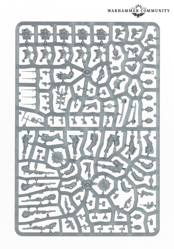 Solar Auxilia Infantry Sprue. Thanks to the Warcom team for saving me from taking a sprue pic, a job I hate Credit: Warhammer CommunityWe can dive right in to what's great about this kit. It's very posable - each torso, arm and head combination being adjustable on top of five distinct pairs of legs. There's a lot you can do with a simple arm lift or torso twist and that's great because your basic Solar Aux list, even as allies, probably starts off at 40 infantry in one flavour or another. I don't think you're going to get tired or irritated with virtually monopose models. The rifle arms pose well on any legs or body as well, and as far as a series of dry fits goes there aren't any particularly awkward combinations to avoid. Those who have put together 30+ Mark 6 Tactical Marines will no doubt be pleased to hear this!