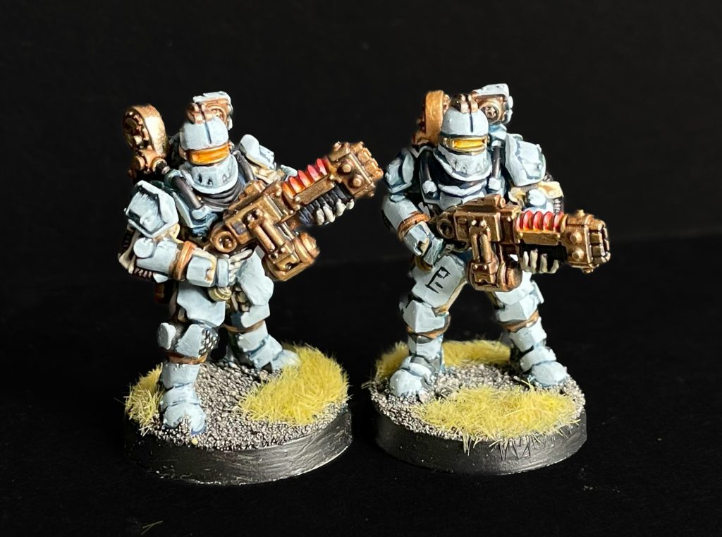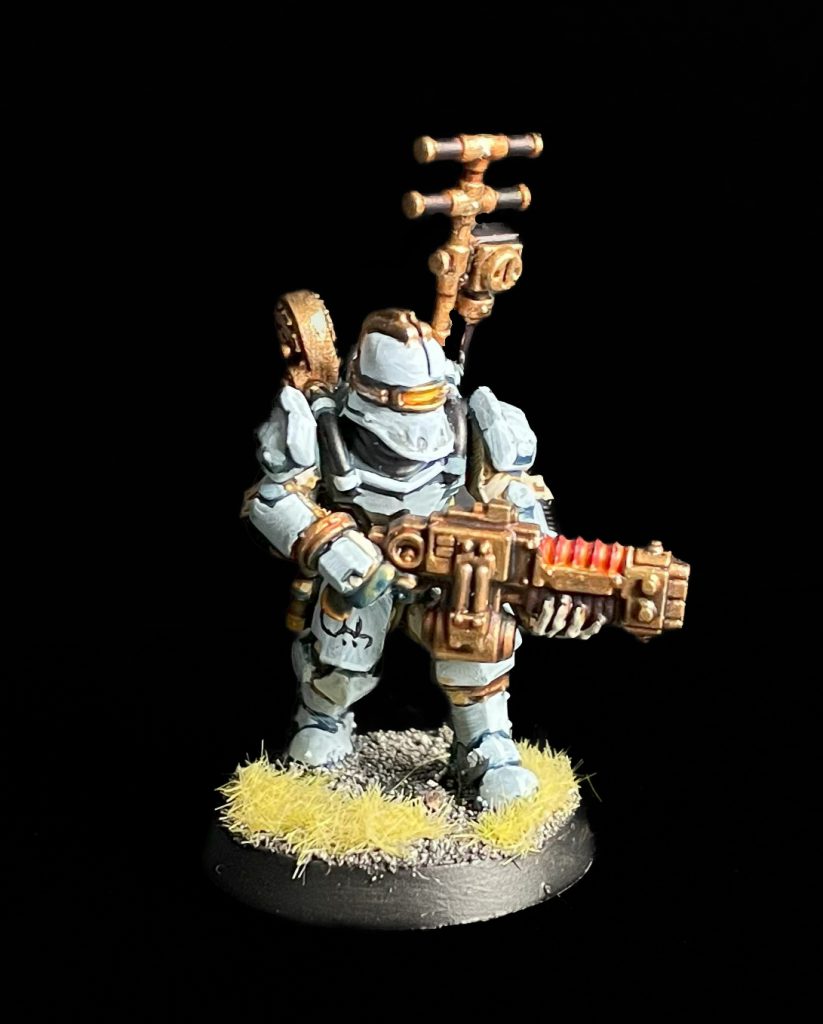 Solar Auxilia, Credit: LenoonThey're reassuringly chunky in a way that really sells their reinforced void armour, especially when compared to their rifle section comrades. They have far more heft and bulk though are still pretty puny compared to a space marine, as they should be! I don't think it's a kit that is going to break any massive design or technological boundaries and that's fine, a solid kit and one that many players will need to pick up at least two of. It'd be nice if you could just buy a twenty soldier kit, or one with axes, volkites, rotors and flamers in, but you can't so no worries.