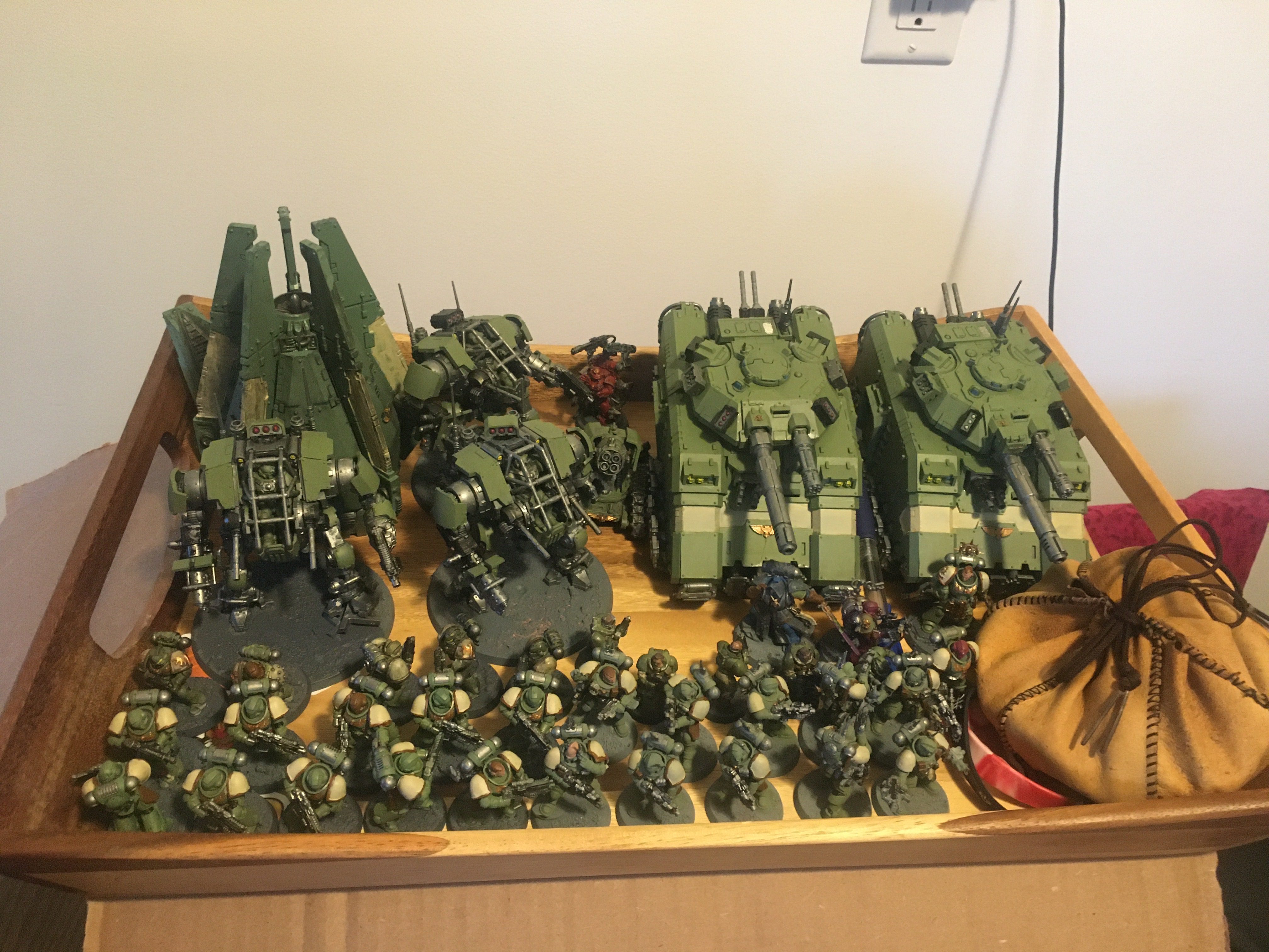 I removed a Thunderfire Cannon, downgraded the Chaplain to a Tech marine, and replaced one set of marines with scouts. Plus I removed some minor wargear to put me right at 2,000 points. This makes the battle pile a little easier to manage as I do not have to try to cover two thunderfires and "frees up" a tech marine to do repairs without being stuck to a cannon. The chaplain is kind of a hard loss (look at all the words I just wrote) but a third suit should be some good pressure that still can be moved around pregame. The pod still feels weird but it's still nice for that "third secondary" that can be hard to get with a gunline.