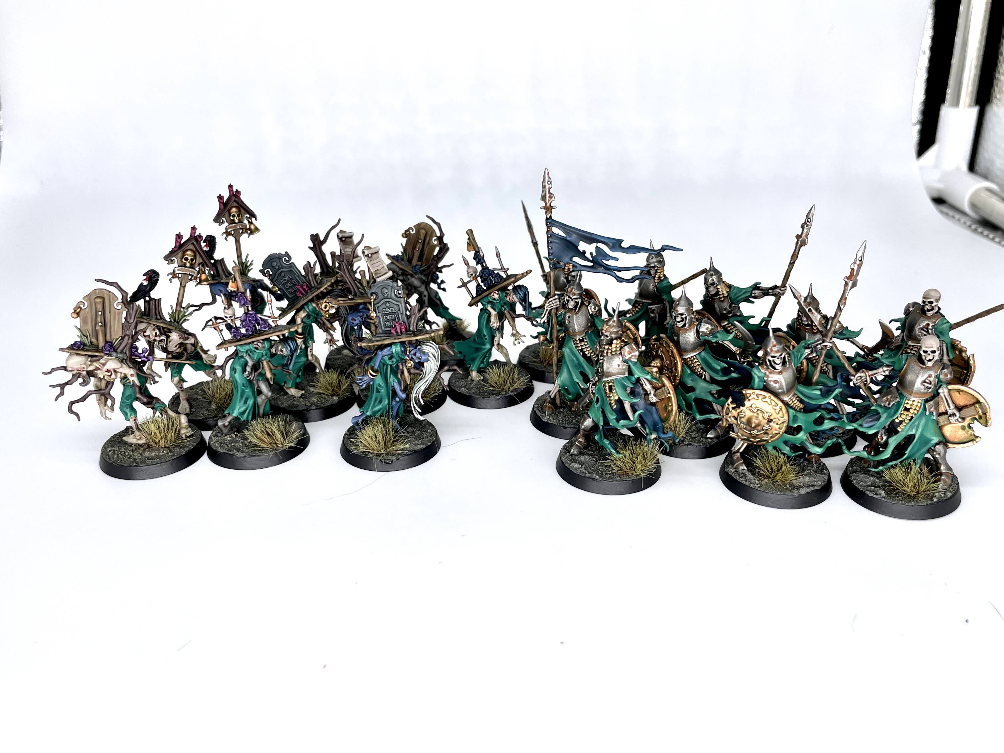 Earlier this year, I mentioned that my wife was nearly pressganged into playing Warhammer with me. Typically an RPG and boardgame enjoyer, wargames have never really been her thing. However, spooky ghosts and banshees are extremely her thing. You may be able to see where this is going, but I will spell it out for you in no uncertain terms. Earlier this month, I had a cancelation of my typical Miniatures Mondays game by my opponent. I was visibly bummed, when my wife, who had a small collection of "I just think they're neat" Nighthaunt models, volunteered to war a ham with me. I threw together army lists for the two of us, rolled out the table, and we got to playing a small AoS3.0 game. Our 700ish points of Nighthaunt and Slaves to Darkness duked it out, with my spiky lads taking the day whilst nearly dying to a man. She seemed to have fun, and the next day excitedly asked when we could play again so she could, and I quote, "fucking destroy [my] dudes". We have added some Dreadscythe Harridans and Spirit Hosts to her collection, which are supremely fiddly models to put together. I have genuinely no idea how someone with fingers a few microns thicker than mine could assemble them effectively.