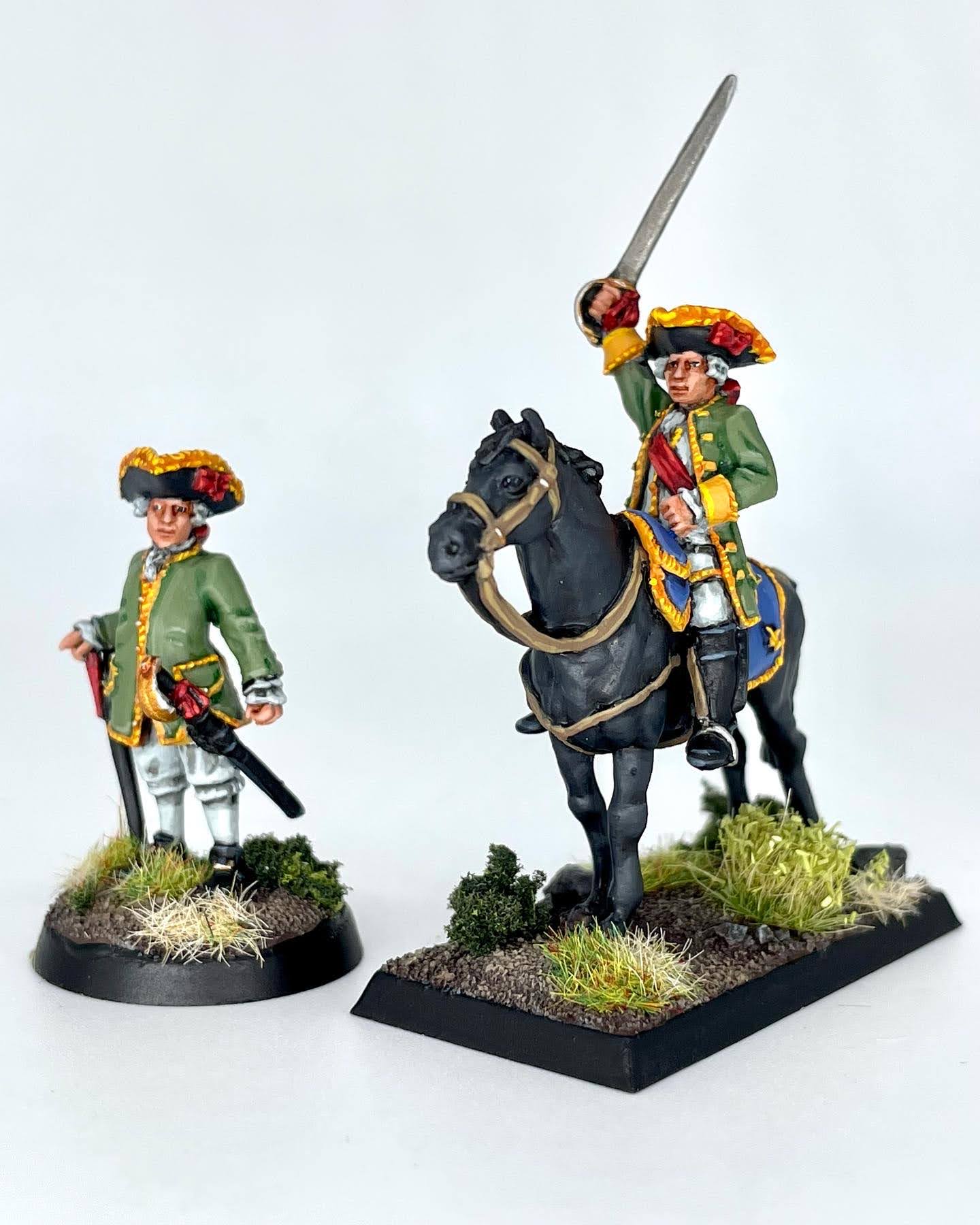 For my last models in this meandering exploration of the past 12 months, I painted a gift for my father. As listeners of my podcast or a very special episode of the dearly departed Independent Characters podcast will know, my dad has been playing wargames since the 70s. He has designed multitudes of games for companies such as Avalon Hill and Dad Game Publisher Extraordinaire GMT Games, and you can purchase many of them. I asked him what he wanted for Christmas, and he said he wanted me to paint him a character like Marquis de Montcalm for use in French and Indian War gaming. As no stranger to the period myself, I was happy to do so. The metal model from Warlord Games has a distinctive, flat charm, and stands in contrast to all the massive heroic scale models I painted this year. I based my paintscheme on the piece of artwork the model is very clearly based on, as I could not find any uniform guides like I could for so many other historicals out there.