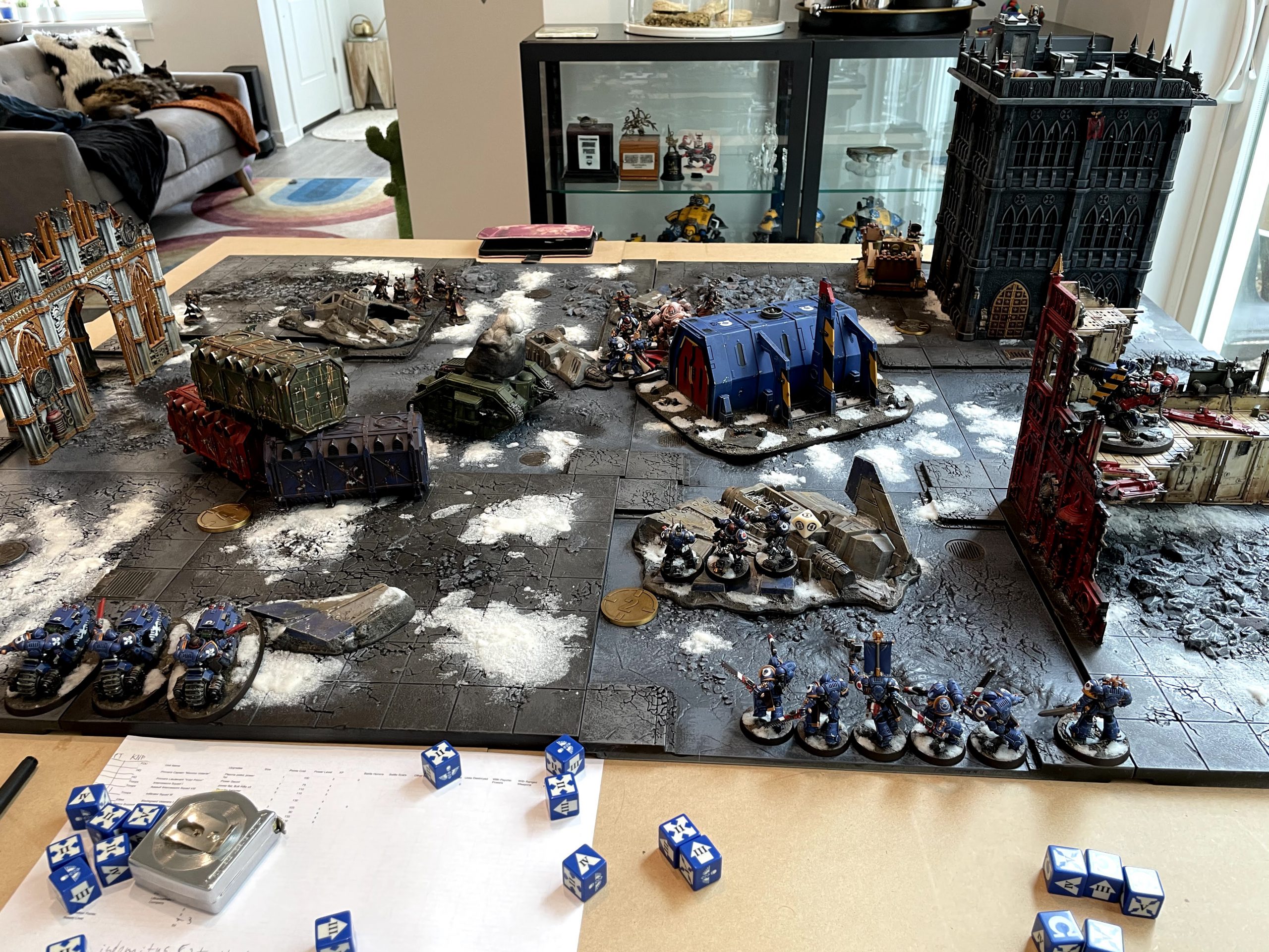 I played in the Goonhammer Narrative, run by said ownable human Daniel Boyd. My first game was against Alex and his Imperial Fists. I've been posting in the same circles as Alex since my Something Awful days, and we've shared many, many pet photos on the sundry Discord servers we're both on. He was one of my regular buddies for the long weekend and a joy to play against.