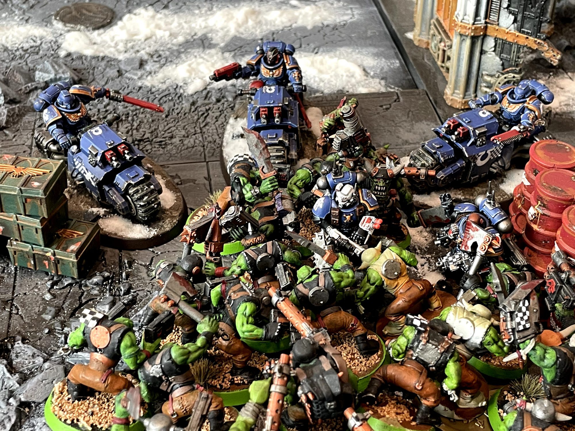 My second game was against Goonhammer's own Greggles, whose work you may have seen on Warhammer Community. I'm fortunate to be spoiled for choice with delightful Gregs in my life, and Greggles is likely the most delightful of the lot. I first met Greggles at the NOVA Open in 2016, but in all the years since have not had the pleasure of playing him until now. This was a hard-fought battle for sure, but boltering his Dredd Mob to death whilst every third model on the table exploded proved to be a highlight of the weekend.