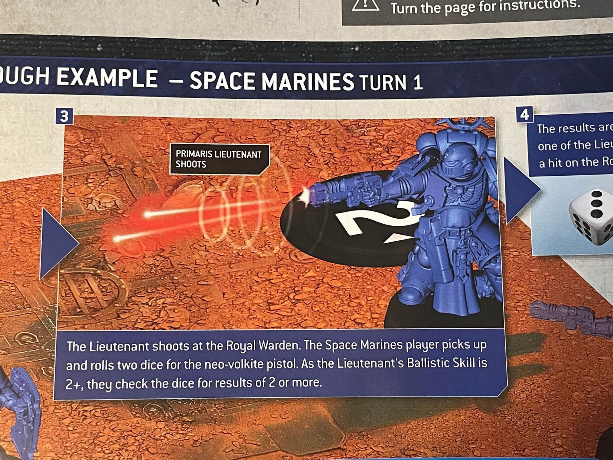 For your very first 40k tabletop experience ever, this is dead simple and shouldn't take more than 5-10 minutes. It lets a player get a grasp on physically moving models, rolling dice, saving, allocating wounds, and playing for objectives. It couldn't be more lightweight, and for a younger player it seems like the exact sort of thing you would want for their very first exposure to the game. There are two easily defined sides with two easily defined objectives, and taking turns playing the two is easy to do. I do wish there was some incentive for the Marine player to actually move their model though. There is no melee or counter-objective play here, so the Lieutenant may as well be a gun turret for this very basic introductory scenario. I guess that would make it easier if you were coaching a first timer through or trying to learn on your own.