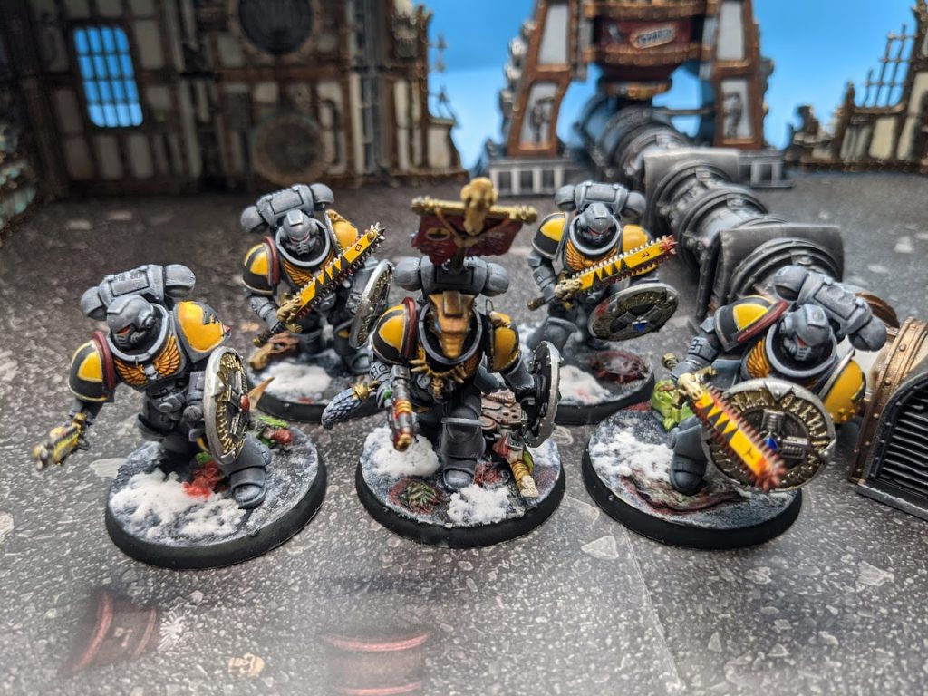 Qulathis the Exile. Credit: SRMIn a rare move, I am including a non-40k model for the header image here. This is because on this particular Cursed City hero, I used both of the included paints in this issue, so I can share my experiences with them firsthand. Astrogranite is generally seen as more of an urban rubble or ash wastes basing paint. Because it is a medium grey in line with Mechanicus Standard Grey, a wash can go a long way towards defining a different environment. In the above case I used Athonian Camoshade for a dead earth look, while the slim paint guide in this week's issue of Imperium uses Nuln Oil instead. A drybrush will finish the job, but this issue doesn't go into further detail on that front. I would recommend Dawnstone or Karak Stone depending on what wash you use. However, the star of the show this week is the Texture Spreader tool. It feels a bit flimsy, as a soft and rubbery piece of plastic with an obvious seam running down the side - but by gum does it spread texture paints well. Ever since I started using texture paints, I have used either old brushes or metal sculpting tools to spread them, but these presented challenges. Both were rigid, and couldn't generally hold that much texture paint at a time. This tool is instead flexible enough to work around a model's feet or the bottom of a pot of texture paint, while having broad enough heads on either side of the tool to effectively spread texture with a good amount of control. I have already begun using it in my own projects, and I will be using it every time I slap some texture paint on a future model's base. As for Yriel Yellow, it is, unfortunately, a yellow paint. Yellow pigment is especially large, and as a result its coverage is generally pretty poor compared to other hues like blue. It is, however, important to have some saturated primary colors to work from, and this certainly fits the bill. In the case of the model above, I mixed Yriel Yellow gradually with Averland Sunset to get some highlights without losing saturation the way mixing in white would. As far as yellows go, it's fine.