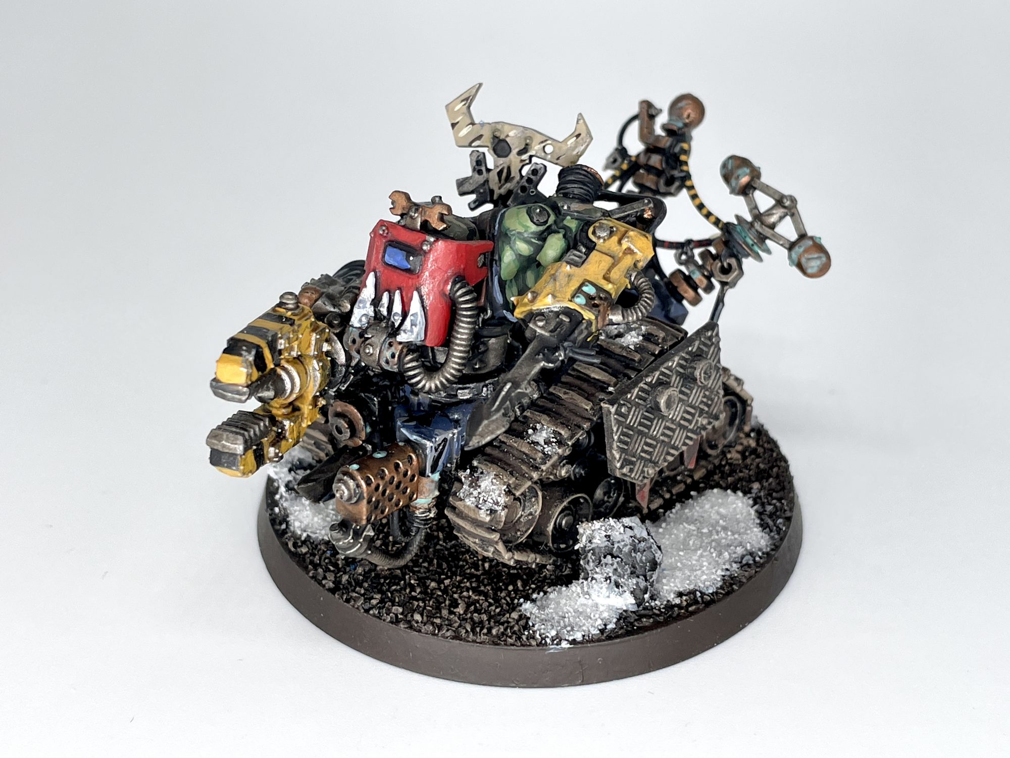 Mutoid Mek. Credit: SRMAs the hobby section is largely a reprint of issue 32's section regarding Kataphron Destroyers, I thought I would share a personal narrative from my Dorkamorka days. With 2016 dawning before any of us knew just how horrendous that year would be, one of our group members held a conversion contest. Jack, sweetheart that he was, is, and will continue to be, gave everyone a Kataphron sprue to work with and would piece out a Betrayal at Calth set to the winners. I was painting Blood Axe Orks at the time, and as a huge fan of Smash TV, I thought making my own Big Mek would be in order. -2sk9I&t=211s">This isn't even my first time linking this video in this series, but Smash TV absolutely rips and is worth your time and quarters. Anywhomst, this Big Mek, alternately a Big Mek with Kustom Force Field or Mega Armored Mek with something or other, regularly found his way into my army lists. When it came time for judgment, he took first place, and I proudly took home a sprue of Cataphractii Terminators for my efforts. It's a fun kit to work with, and the opportunities for Ork or Chaos techno-weirdos make for strong conversion fodder.