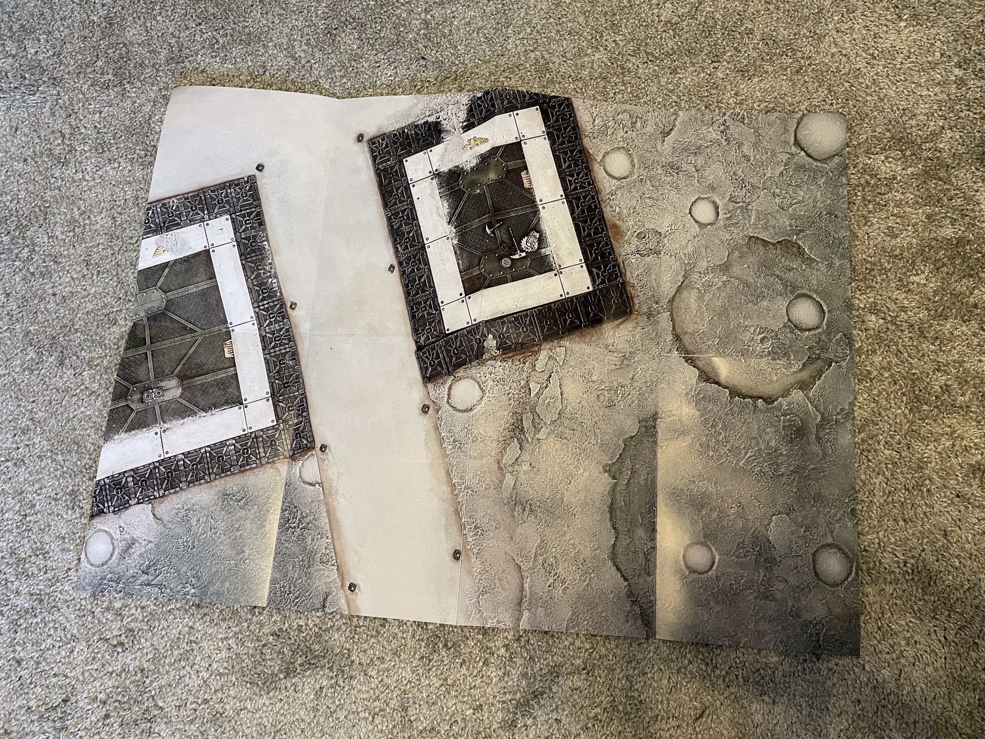 Canoptek Plasmacyte. Credit: PendulinWe finally level up from the tiny paper playmat to a firmer, larger paper playmat. This 22x30 mat replaces the old Mars/Necron Discotheque one. This is half the size for even a Combat Patrol 40k game, but the exact size of modern Kill Team. It's forward thinking and more useful than the previous one for longer-term hobbyists. This issue's scenario uses this new Mars-themed side, which has printed spots where we will later place some Munitorum Cargo Containers. A small boxout tells you to ignore these for now, but future issues will have said terrain in them. However, on the other side there's a treat for Goonhammer readers: a moon-themed board which I dub Moonbase Klaisus Secundus: