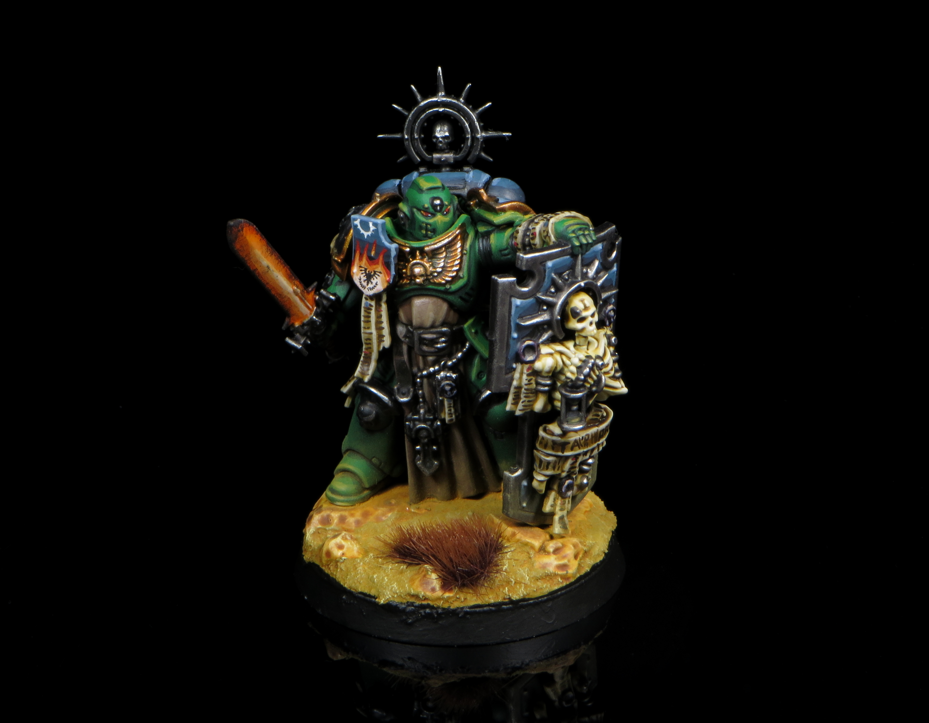 Captain Marcius Venator, Slayer of the Six-Eyed Fiend, was weary. While it had always been his preference to fight in the midst of the battleline, inspiring the troops, it had started to take its toll on the 300 year old veteran. His Pistol, Bane of the Fleshless, felt heavy in his power armored gauntlet as he saw the remains of his freshly defeated foe rise once more. By sheer coincidence, his power sword, also named Bane of the Fleshless, shared its title with his impetuous pistol. As the Necron dead reanimated before him, he smirked, knowing his weapons were about to live up to their names once again.