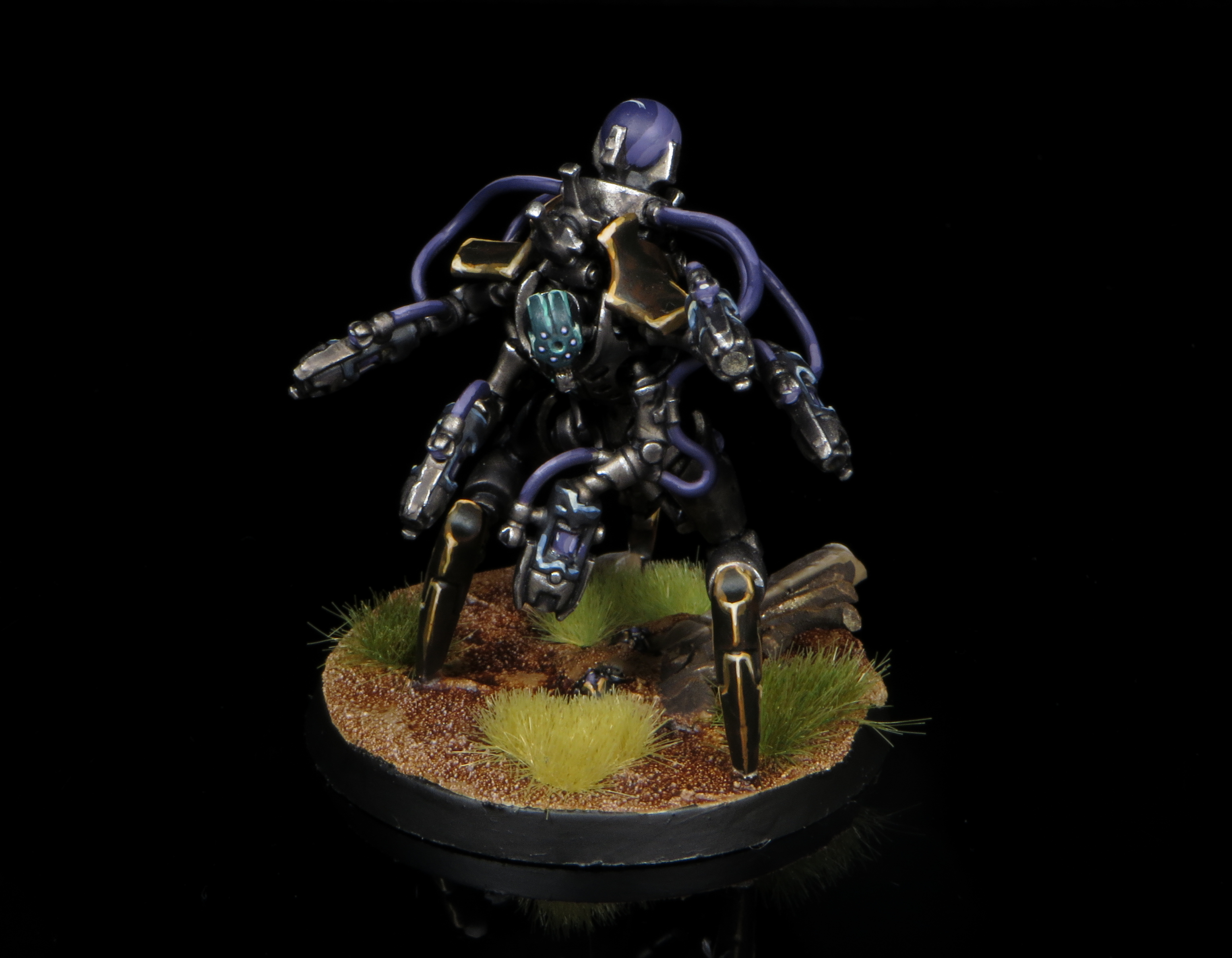 Necron Hexmark Destroyer. Credit: PendulinAs alluded to previously, the rootinest-tootinest-gun-shootinest Necron of all is the star of the show here. Hexmark Destroyers take the idea of a sixgun and extrapolate that, Szyslak-like, into six guns. They are apparently quite good at using these to make things die extremely quickly. These Enmitic Disintegrator Pistols cause atoms to repel one another, so imagine the experience of magnetizing two bits only to get the polarities wrong, except it's with your entire body. Deathmarks who've decided they want to Mark more Death often become these Hexmark Destroyers. Of course, we are afforded the opportunity to write up a little story about our aimbotting aimbot here, courtesy of a new Battle Record: