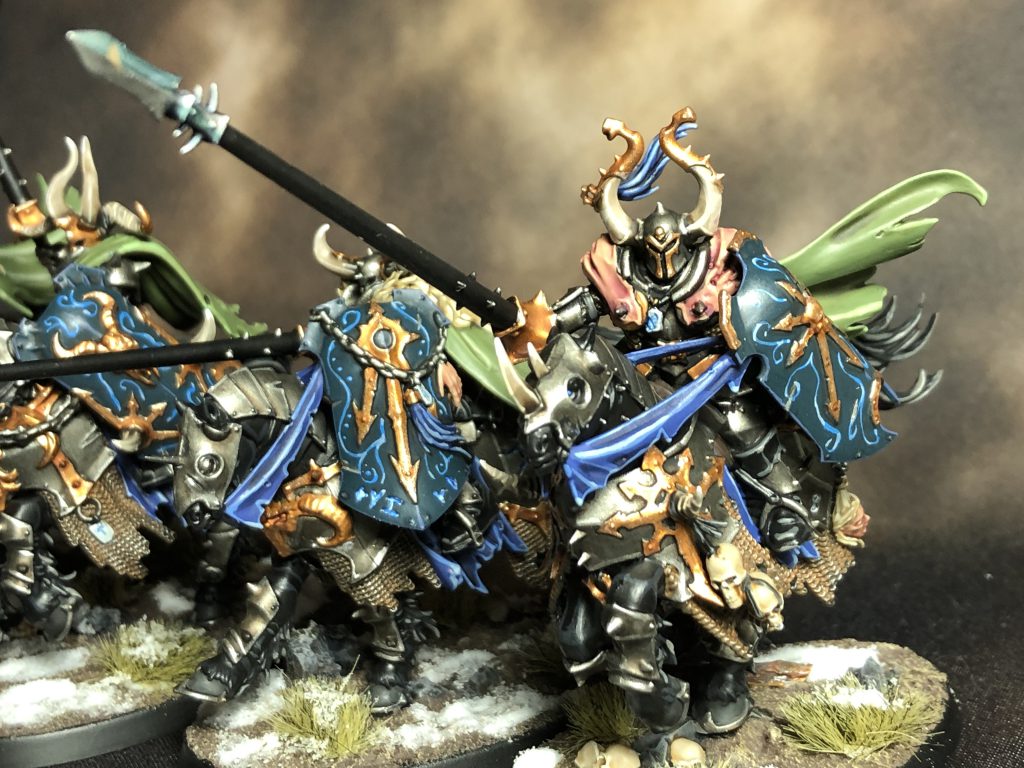 Knights of Chaos. Credit: SRMIt's a paint issue, but fortunately the two paints this week are rather good ones. First is Incubi Darkness, a slightly desaturated dark blue-green that I use for all the shields on my various Chaos duders. It covers reasonably well, and is a great way to have a somewhat neutral tone on a model without just falling back on grey or brown. It's used here mostly on Kruleboyz cloaks and the like. The second color this week is Nuln Oil, that ever-useful black wash that should be in every painter's toolbox. There's the temptation to pull a full Frank's Red Hot and Put That Shit on Everything, but I believe it's best used sparingly, and mostly on metals or greys. Quick tip: if you want to darken a color, don't just shade it black. You can muddy things up that way. Consider the tone and temperature of the color you want to shade and how you want to do it. For instance, shading a yellow with an orange to intensify the color, or shading a red with a purple to cool it down and add some contrast. There's a load of options out there, and just slapping Nuln on everything will only get you so far. The painting instructions this week mostly focus on using Nuln Oil to shade silvers, blues, and some white areas on our collection of Stormcast Eternals, as well as metals, leathers, wood, and squig skin on our Orruks and Gitz. There's a helpful little section calling out some particularly tricky areas that will require cleanup across our collection, which I do appreciate. Understanding that you can go back and just fix a mistake is something I wish I internalized earlier as a painter.