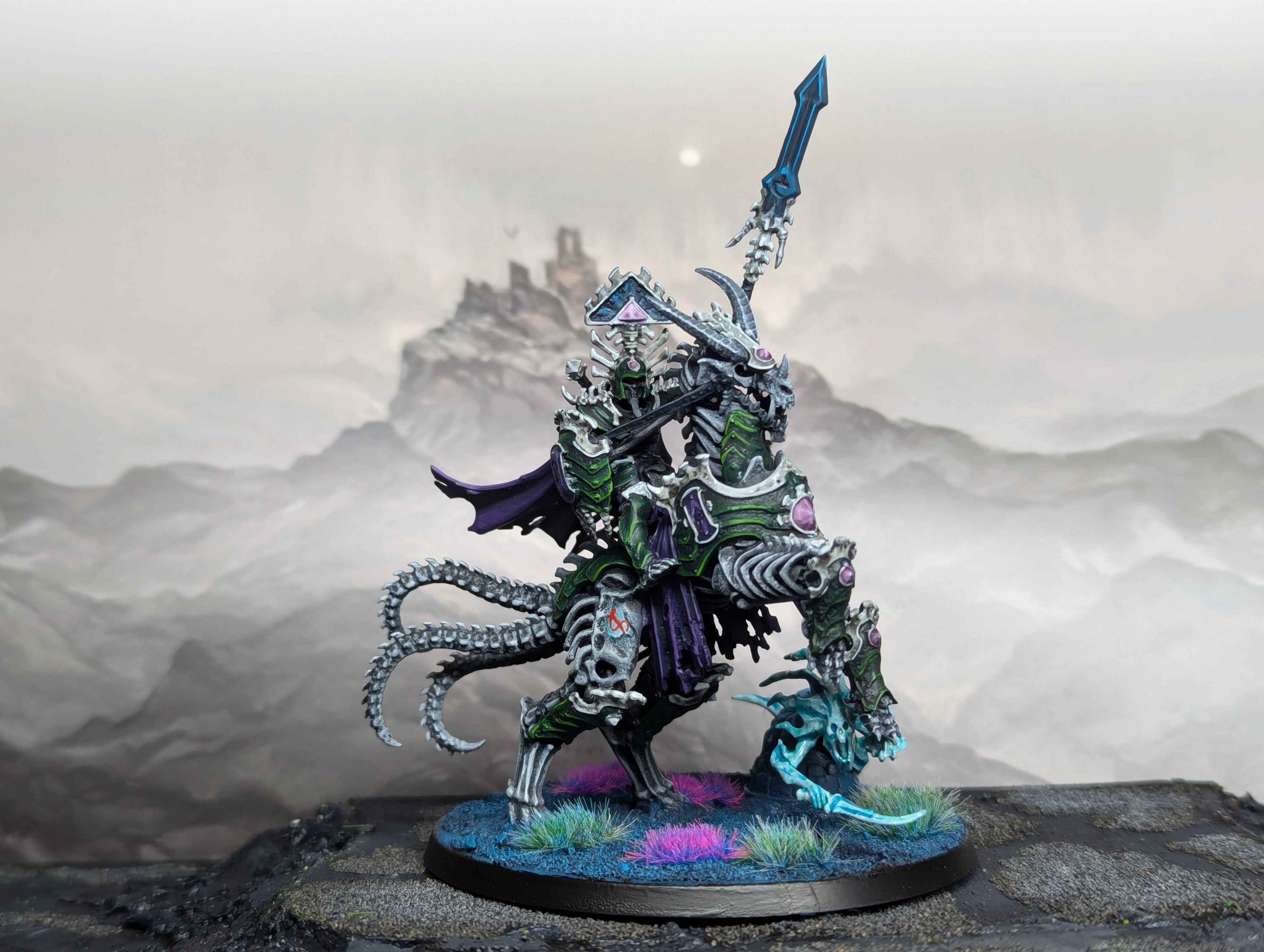 Ossiarch Bonereapers Arch-Kavalos Zandtos. Credit: Laura BatesDespite the plague-ridden Skaven on the cover, our first article this week concerns the Ossiarch Bonereapers. These are Nagash's most elite servants, constructs of bone who represent the orderly march of death Nagash likes best. They're quite literally built into a caste-based system, rigidly adhering to their roles. How much autonomy any of them truly have is left as a mystery here, but with some of their number having ranks and proper names, it's safe to assume that somewhere up that chain of command they gain some kind of sentience. Their bodies are crafted from bone, mostly gathered in the Bone Tithe, wherein they ride out to cities, tribes, and settlements, and demand just that - an osseous tribute of bone. When it's satisfied, they'll leave the place alone or even offer protection, but in the same way you'd protect your garden before harvesting its vegetables come fall. They will be back, they'll want more next time, and when they return, the crypts and graveyards might already be empty. It's something that can be written to be truly horrific or extremely comic booky, but here it's high level enough that your imagination can do the work.