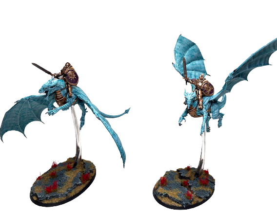 Instagram: aelvenpainterThere's naturally a Warscroll for our newly completed duo of dragon riders, but it's naturally for the obsolete third edition of the game. I only bring this up because when these guys dropped in 3rd, they were a problem. This was a unit that could do significant damage in every single phase, was tough to kill, relatively inexpensive, and projected a threat over the entire table. Even when they died they'd cause a bunch of mortal wounds, since Stormcast had the very lame army ability where Sigmar's lightning bolt caused them to become mortal wound bombs when they died. They've since been toned down, but whole armies of nothing but Stormdrake Guard were pretty common for a minute there.