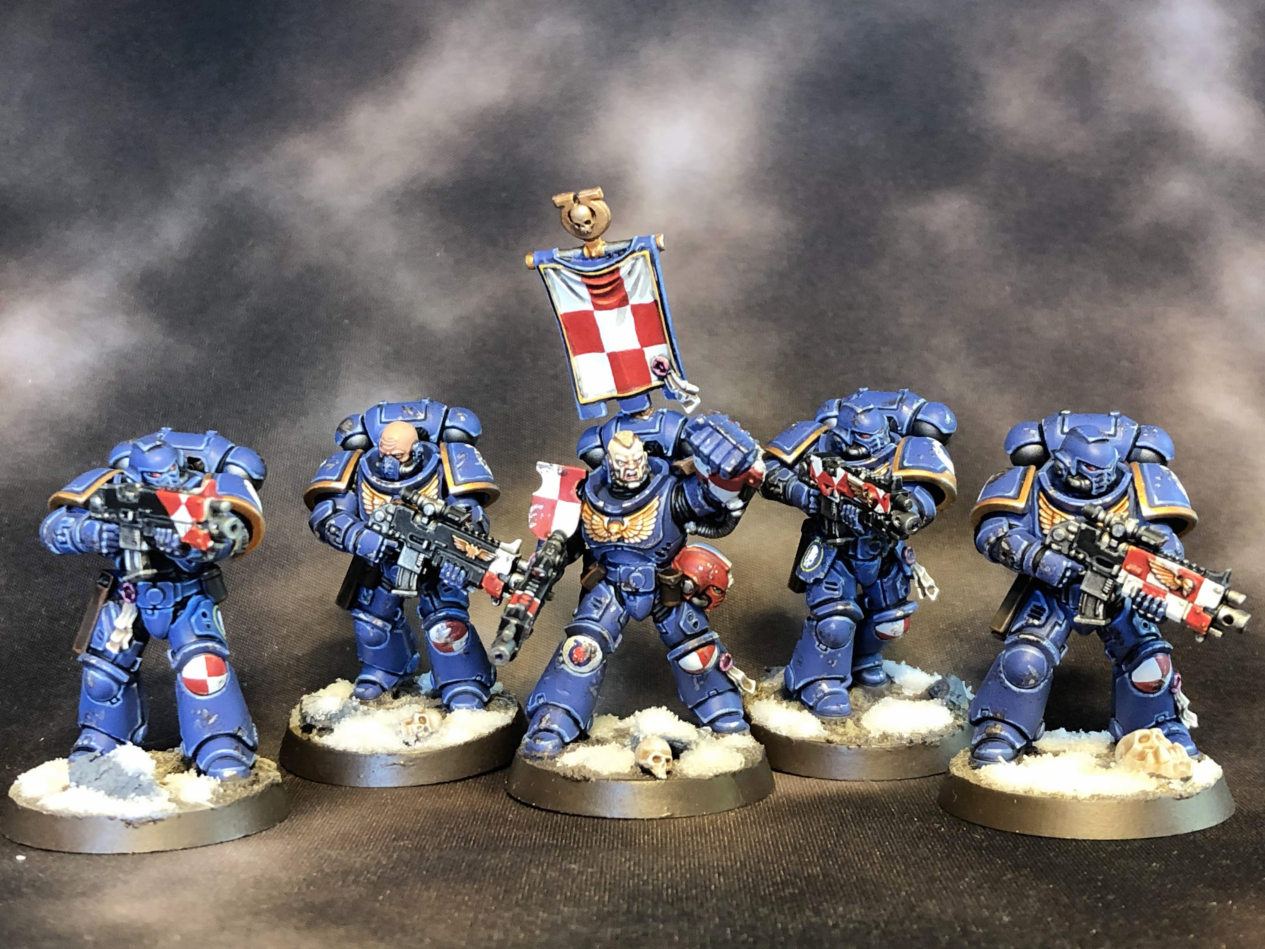 Hey all, it's me, Campbell McLaughlin of The 40k Badcast and also those extremely dumb ">Dawn of Awesome cartoons from like 10 years ago. This is gonna be my fourth NOVA Open, and hopefully not the second year running where I'm painting shit until the last minute. I'll be repping Humanity (the faction of Cool Dudes and Sexhavers) in the Narrative Warlords track, and I'm sure to snatch defeat from the jaws of victory in at least half of my games. In previous years I've brought retro Ultramarines, Black Templars, and Imperial Knights, so it should come as no surprise that I will remain extremely on-brand with another flavor of Imperials this year: Primaris Ultramarines! These are way different from my retro Ultramarines, Heresy Ultramarines, and the Ultramarines I painted in high school, believe you me. Here's the first 1000 points or so: