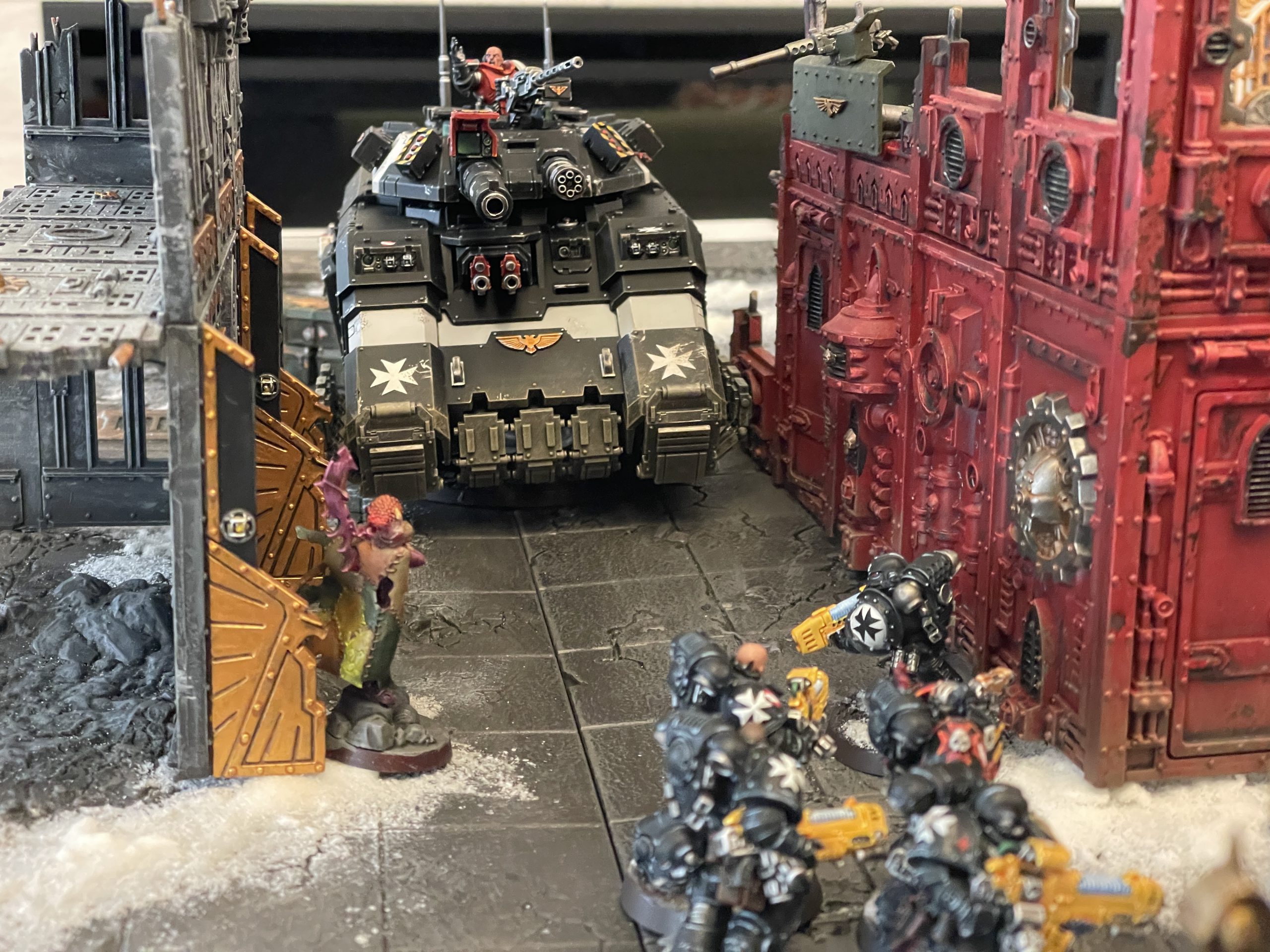 I'm definitely having my old grognard moment right now. I remember when Hellblasters were real nasty in early 8th edition and thought I'd manifest the memory of those halcyon days again in the midlife crisis years of 9th edition 40k. How are they on the tabletop in 2022? Less good, squishier given the damage treadmill of 9th edition, and not rerolling as many dice as they used to. I brought them out in their inaugural battle, in which Newly Painted Model Syndrome threatened to rear its ugly head once more. However, even after losing their source of rerolls on turn 1, they were able to blast the everloving hell out of some Drukhari Hellions and Warriors. The Repex followed up by destroying a Raider, unit of Incubi, and hilariously, dumped a whole turn of fire into an Archon. Said Archon failed their very first save against an errant Stormbolter shot and was summarily Laser Destroyed off the table.
