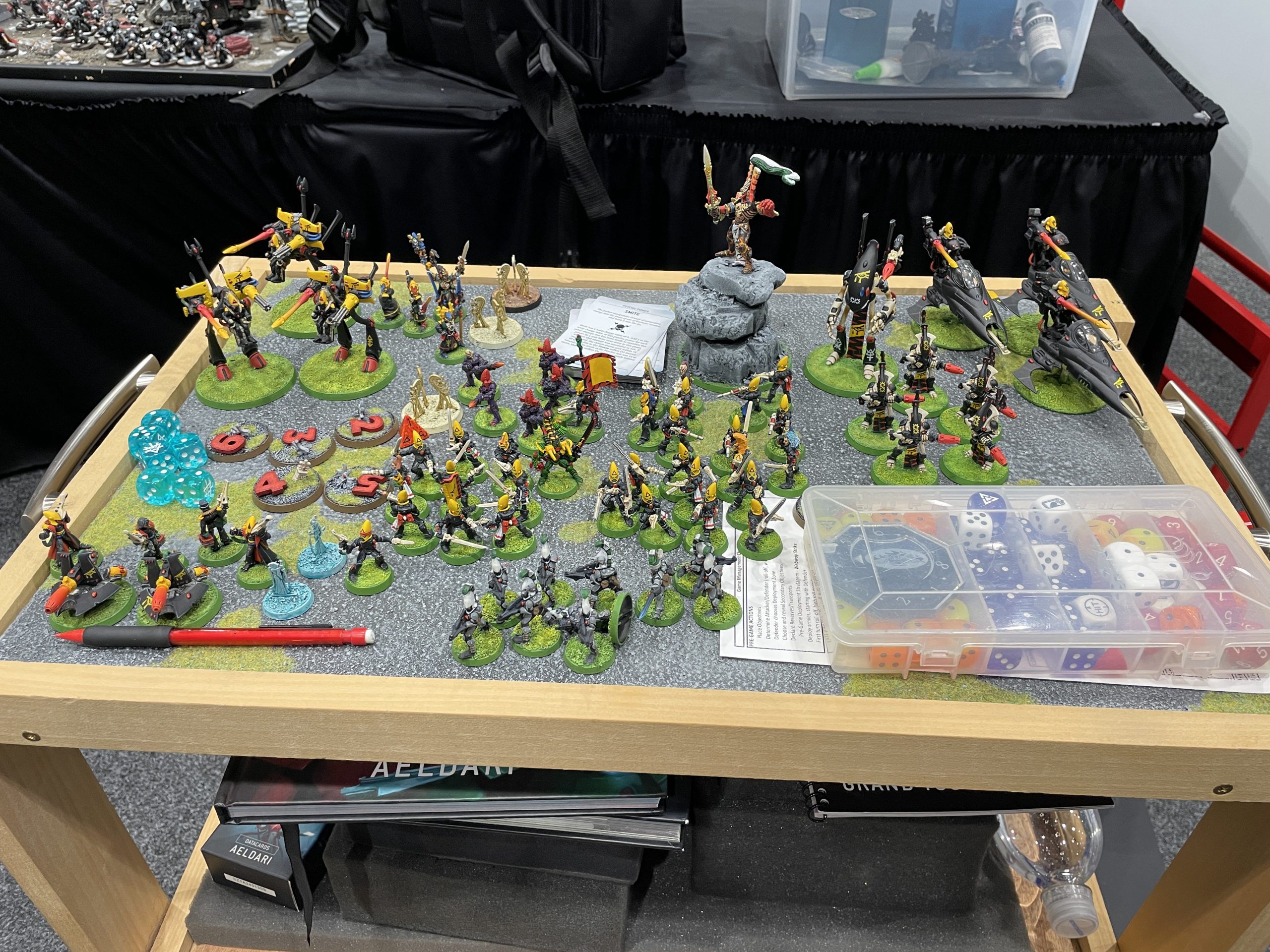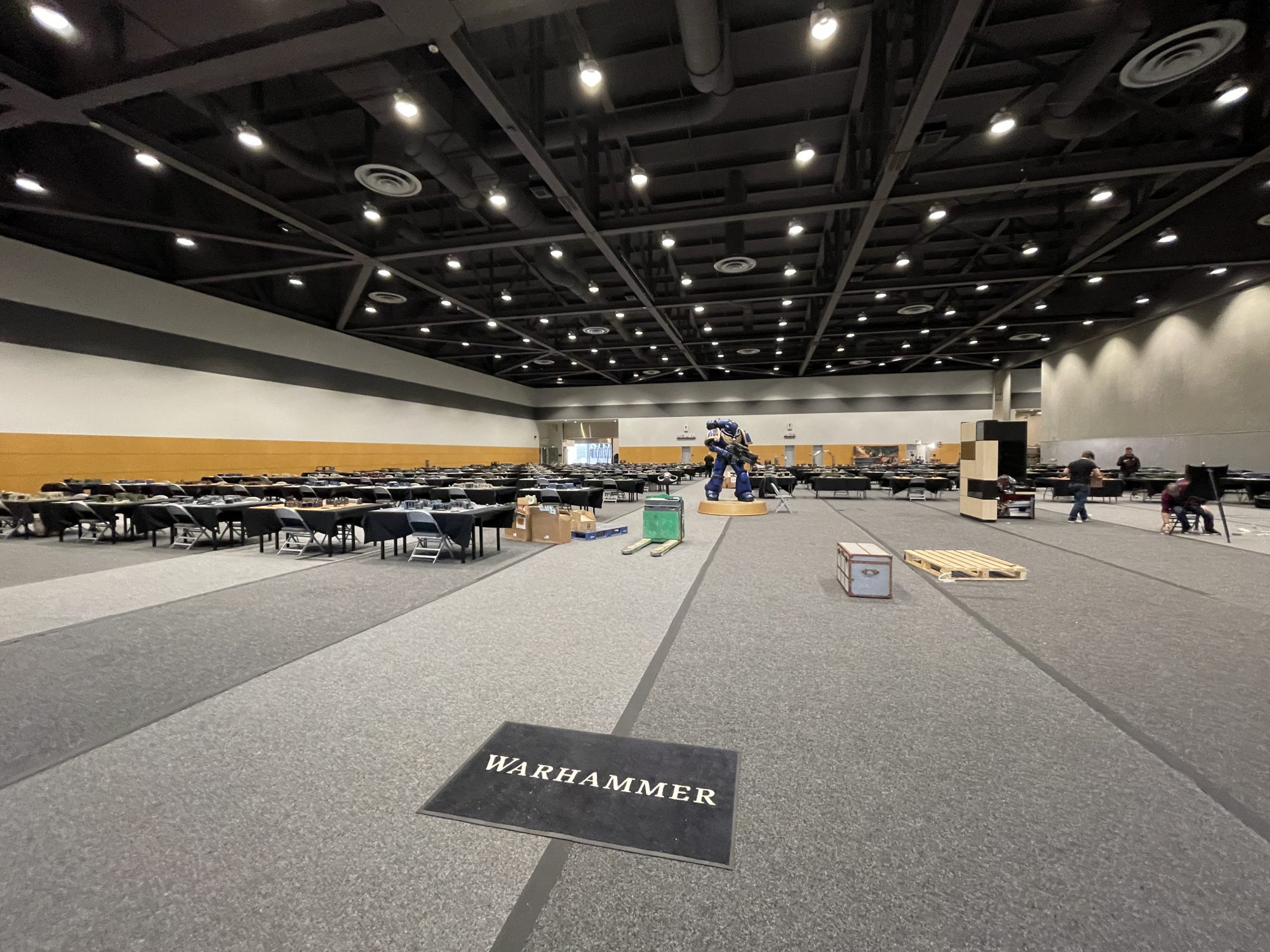 I was picked up by my friend/listener/Goonhammer Open US Crusade champion Quinn, who was going to be playing in the GT with his Ynnari. The 25.2 miles between the airport and the venue took about an hour to drive, which I have been told is extremely normal. We listened to power metal and talked about Warhammer. It was a quality drive, and he gave me a 90s Necromunda Bounty Hunter at the end of it, which I am extremely stoked to paint up.