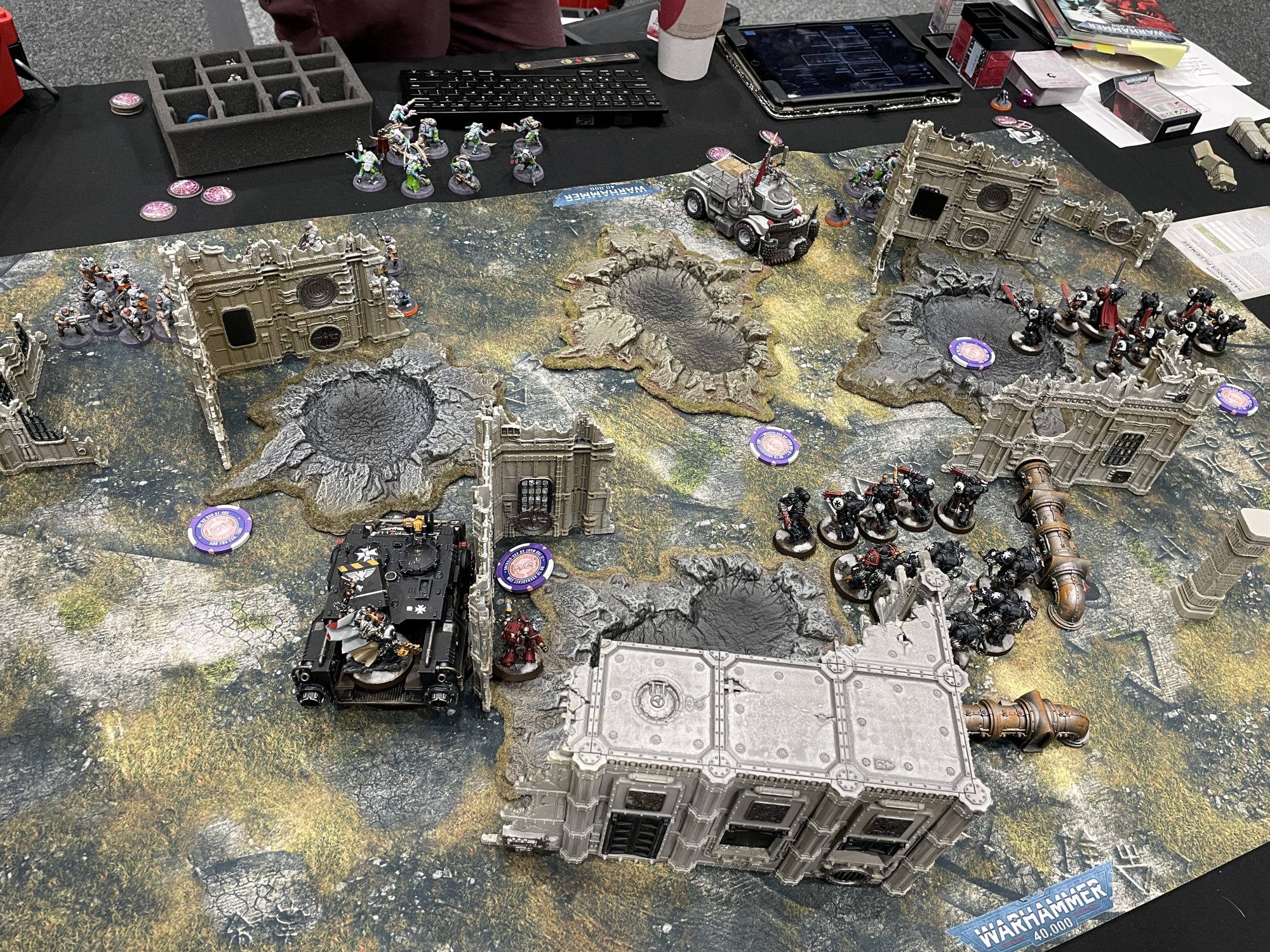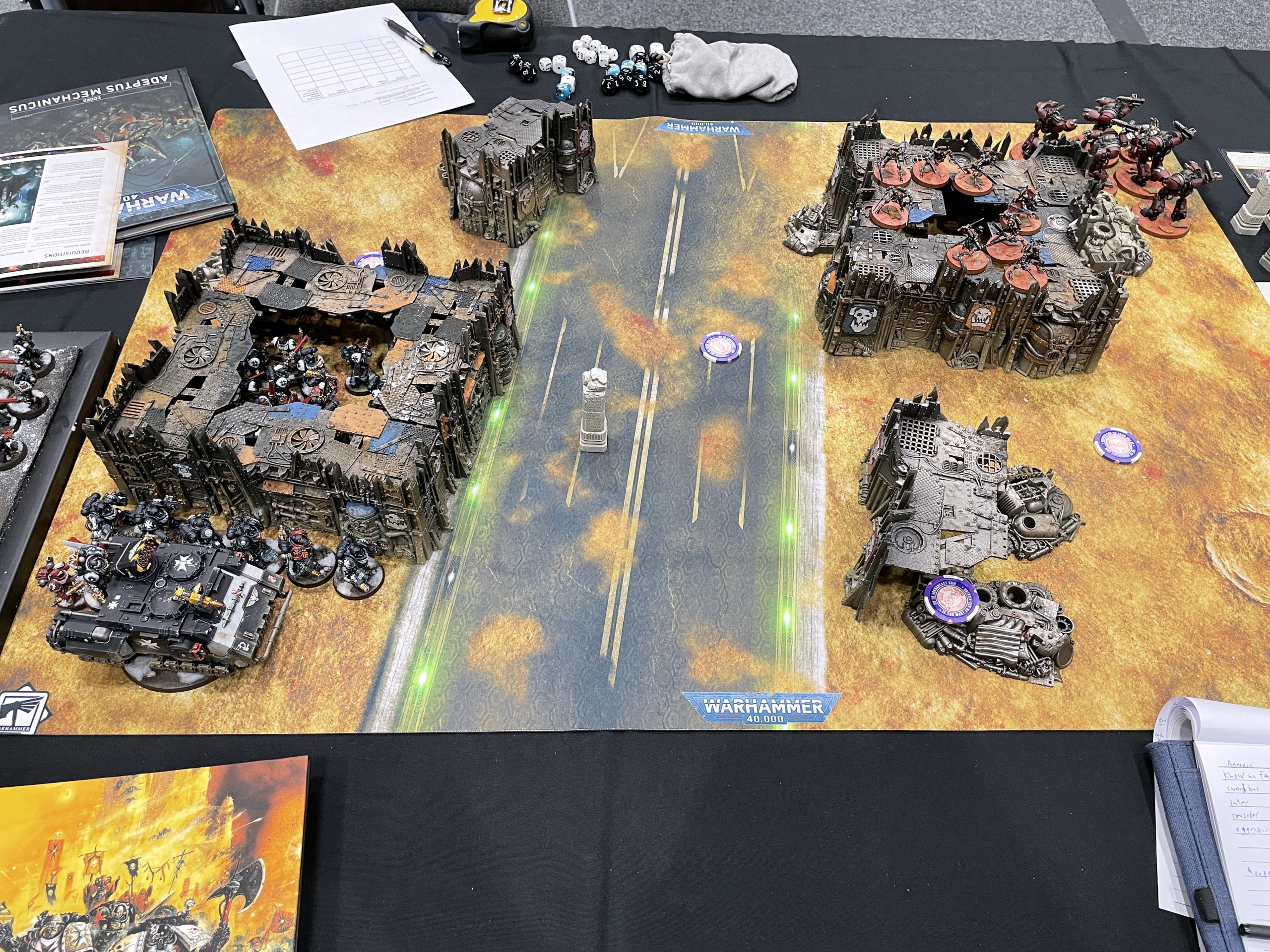 Black Templars vs. Admech. Credit: SRM and PendulinI was summarily tabled on turn 3.