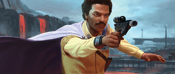 Lando Calrissian Lando is a simple and reliable man in the officer slot. When your ship is about to be flattened by a supercharged enemy attack, Lando makes himself known and you force your opponent to re-roll any dice in that attack. He can passively influence the opponent's use of their strongest ship just because they don't want those re-rolls forced upon them.