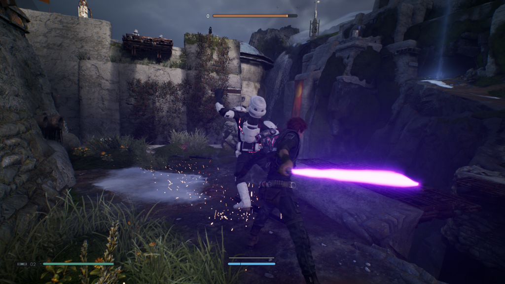 Cal Keskis, the main character of Jedi: Fallen Order portrayed ably by actor Cameron Monaghan (known for far less power-fantasy type roles such as Ian on the Showtime dramedy Shameless and, ah, the freakin’ Joker on the television series Gotham), is a pretty stock-standard one of these guys, though a bit more restrained than Kyle Katarn from the Jedi Knight games or Starkiller from The Force Unleashed. Cal isn’t a corny swashbuckler running into a who’s-who of the original trilogy Star Wars universe like Kyle or holding his lightsaber backhand-style while doing increasingly ridiculous dark side atrocities like Starkiller (née Garen Malek); he’s a Jedi padawan who escaped Order 66 as a tween and has been hiding his past while just trying to get by in the years since the rise of the Empire; if he sounds a lot like a remix of Ezra Bridger and Kanan Jerrus from Star Wars Rebels, well, it’s a pretty common lineage for heroes with lightsabers during the inter-trilogy period. After being forced out of hiding and joining up with a mysterious older Jedi mentor of his own, Cal’s goal is to find a list of Force-sensitive children that the Jedi hid away and start to rebuild the Jedi order. As far as plots go, it’s clean, basic, evocative, and the material it directly lifts a bunch from Dave Filoni and company’s Rebels and Clone Wars cartoons (which is all over the game if you know what you’re looking for; the Jedi list itself featured in an early season Clone Wars plot) is done well enough that it’s a value add instead of being disappointingly derivative.