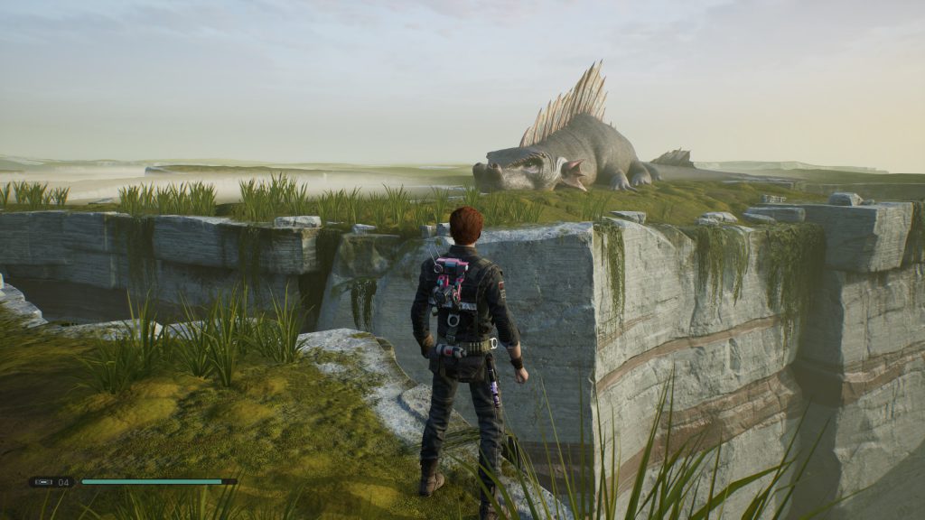When the game was released there were complaints that it didn’t allow you to build your own hero, and instead stuck you with another one of the many attractive white men in Hollywood champing at the bit to play Star Wars protagonists. The complaints are understandable, but it’s also understandable why Respawn chose to go in the bespoke protagonist direction for the character. Not only do you spend a not-completely-insignificant time as child Cal, which would have been a fun thing for the game to algorithmically try to figure out on the fly, but Monaghan’s performance is fully face- and motion-captured (as is every other major human character’s), which allows for a much greater range of acting in the final product. There are times, however, when this weirdly falls short; when Monaghan makes a face that’s intended to have more subtlety than the game actually conveys, but the game isn’t quite able to get the corners of his eyes or lips all the way correct. There is no similar issue with his line readings, however; it’s good work.