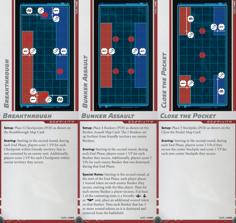 The objective system has been replaced. This invalidates all previous Battle Deck cards (Objective, Deployment, Condition) found in the Core Sets, Essentials Kit and Vital Assets. The new Battle Cards are in a print-and-play PDF and will probably be supported by a physical release next year. If you want to be up-to-date, you have printing to do. This may be the most substantial change to Star Wars: Legion since its release in 2018. It reshapes the entire tempo and 'feel' of the game in ways that will be realized in the coming months.The short version is as follows (Core Rulebook, p. 18-19):