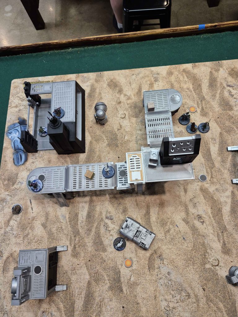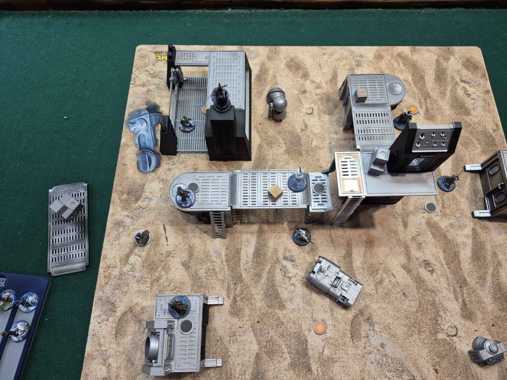 This reposition let Luminara ingress up and dash back down for some extreme movement. I still had a force to spend for a dash so I could contest the top right point but really, it was the wound that set everything in motion. The wound triggers allowed the ARF trooper to dash with Luminara’s identity onto the bottom middle point. Ki-Adi trigger gave himself the dash he needed so I could double body the top right point. Then Shaak Ti claimed the top left objective because the coverts could no longer contest. This was a massive 4 turn swing with a model that is arguably one of the slower ones in the game.