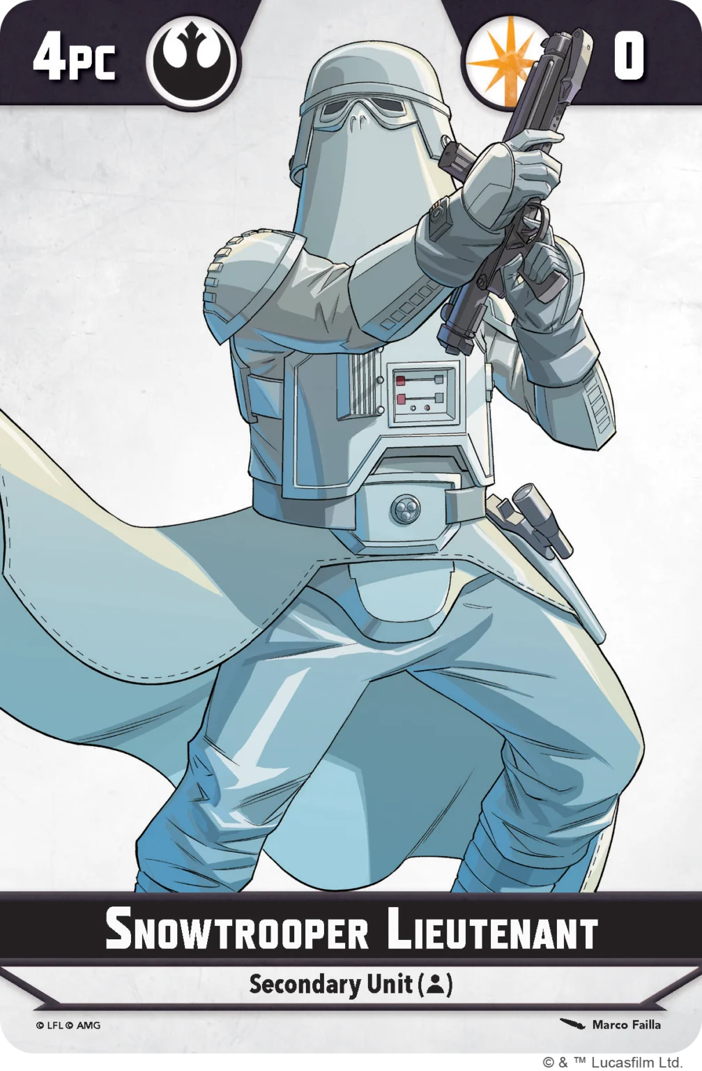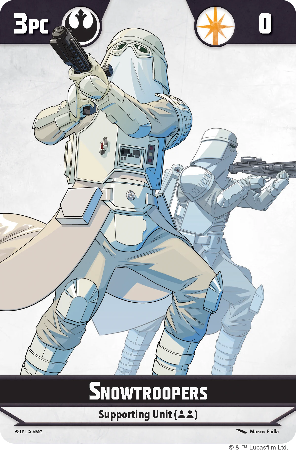 Once again, it is very similar to the 4-point Stormtroopers, exchanging an early strain for a pin but losing out on the condition on most levels of their expertise chart. Early recovers can let you fish for a shove with Assault Tactics and recover any self-inflicted damage.The Empire is glad for more 3-point options to pair with its powerful 7-point Primaries, and while the Snowtroopers won't offer much in the way of offense, they will be a serviceable option that is hard to pin down.