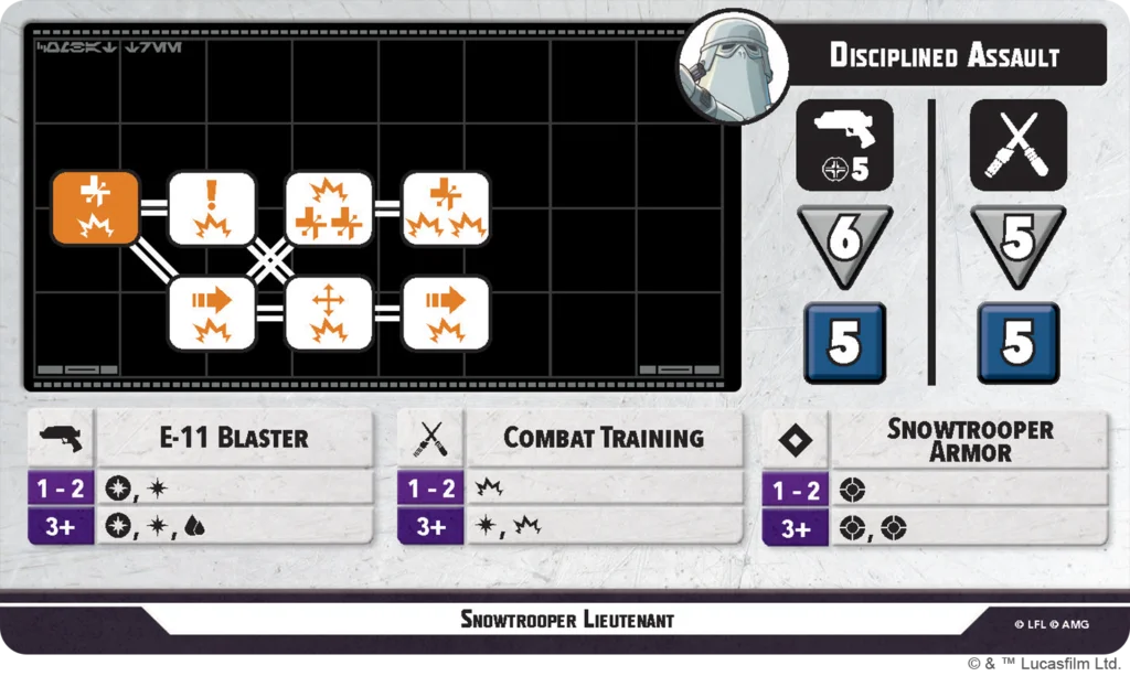 Solid on the Stormtroopers and solid here. The basic troopers rely on higher dice pools to hit their second expertise reliably or get enough strikes to climb their tree. Overall, I'm quite happy to see a dash + two ranged dice for one force on a cheap Support.Snowtroopers Stance