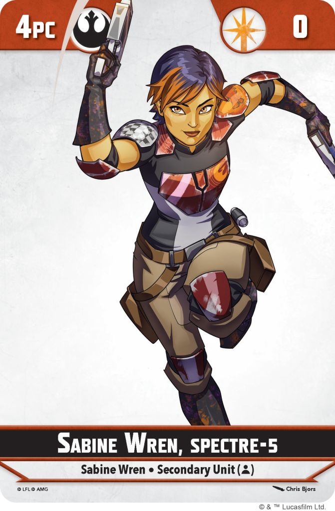 After Sabine completes a move action, she can use this ability. If she is within Range 2 of an allied Mandalorian or Spectre unit, Sabine immediately makes a focus action. Again, these two Spectre squads were really designed to work well with each other. However, it does open up some interesting synergy with Mandalorian units, especially with the upcoming releases of more Mandalorians into the game.Daughter of Mandalore