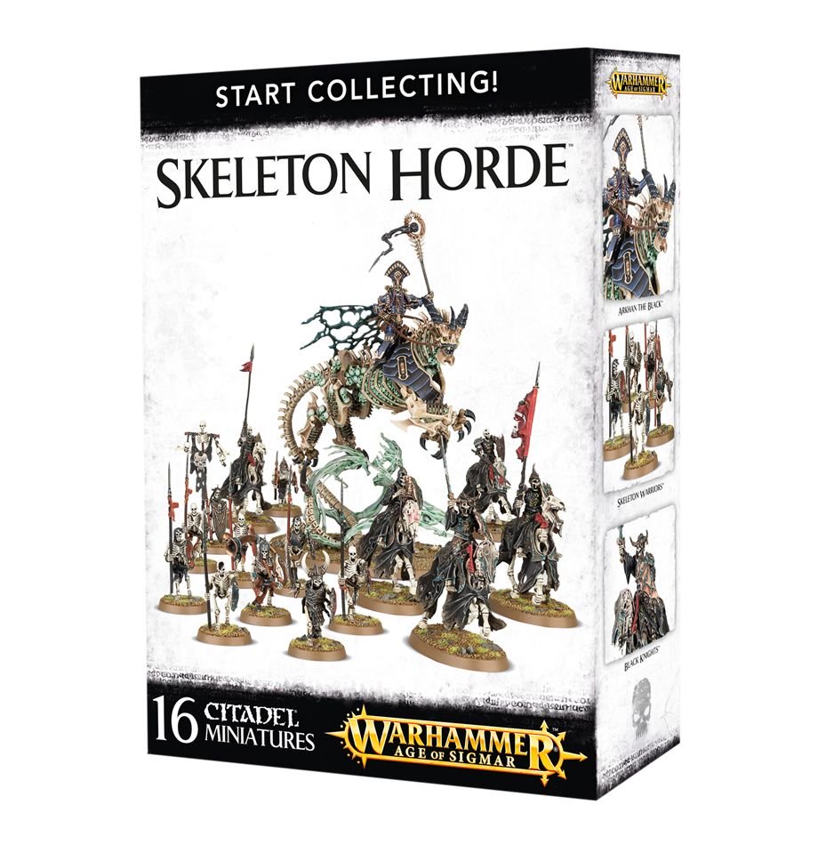 - Contents: 1 x Arkhan the Black (Hero, Behemoth), 5 x Black Knights, 10 x Skeleton Warriors (Battleline)