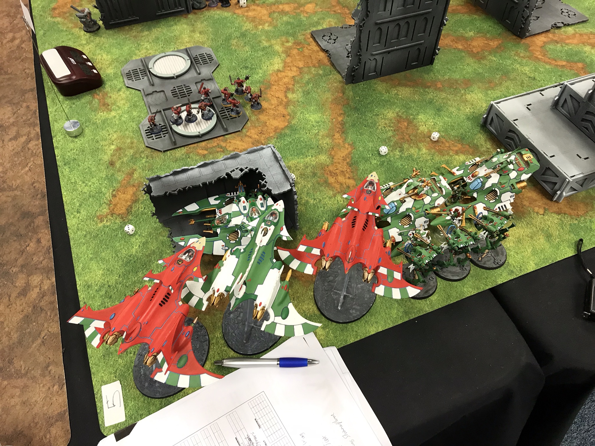If you've read my recent battle reports you'll often see one Wave Serpent deployed much more aggressively than the rest of the army on a different flank - this unit is a dedicated objective grabber, and it's often been placed ready to go out and grab one, especially if I'm playing on ITC missions 3-5 where a strong thrust can start claiming hold more and/or the bonus very early on.