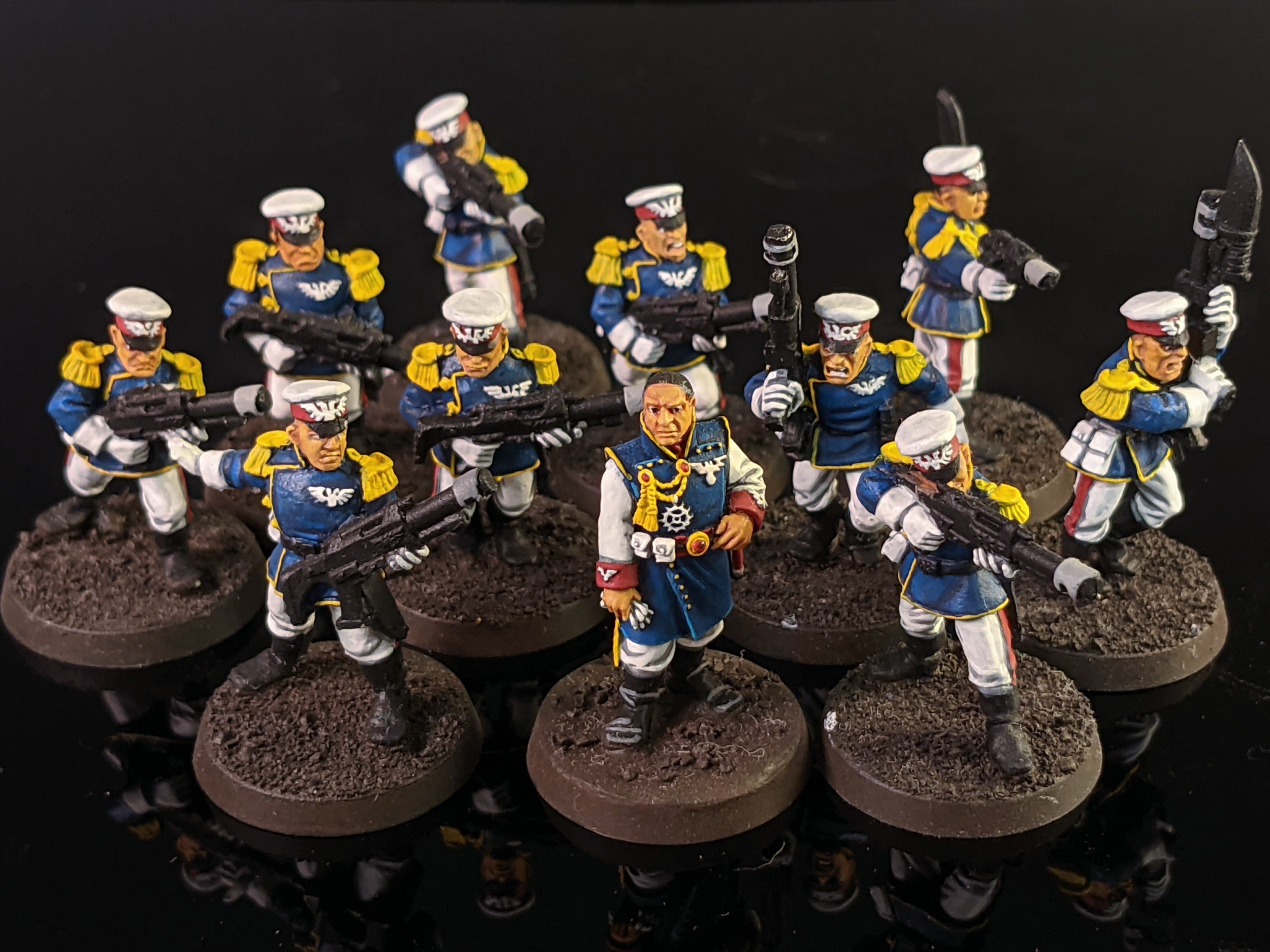 Infantry Squad [3 PL, 55pts] . 9x Guardsman: 9x Lasgun . Sergeant: Laspistol