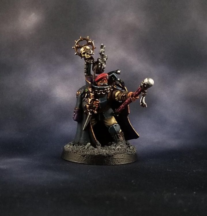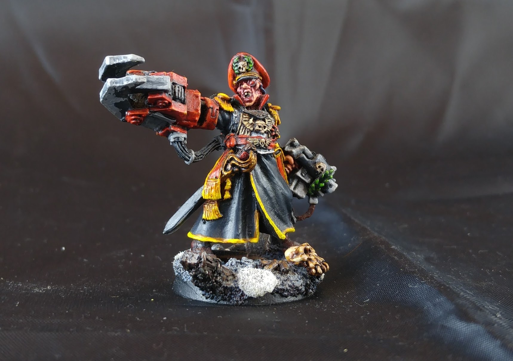 Colonel ‘Iron Hand’ Straken [4 PL, 80pts]: Bionic Arm with Devil’s Claw, Frag & Krak grenades, Plasma pistol, Shotgun