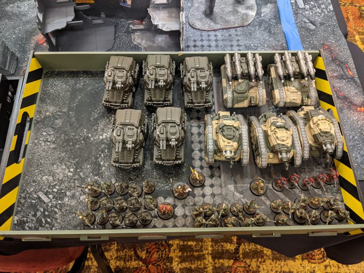 This is a list that clearly built to lean heavily into board control and bring just enough killing power to push those 120 bodies over the edge into a reasonable list. I’ve been considering a list like this for a while, but I’m very glad to see an examplar of it in the wild. It’s a shame he took a loss in round 1; we’re still looking for that coveted first TiWP in 9e! You’ll see a very different take on 9e Guard once I get to typing up my tournament own report for Waaagh fest!