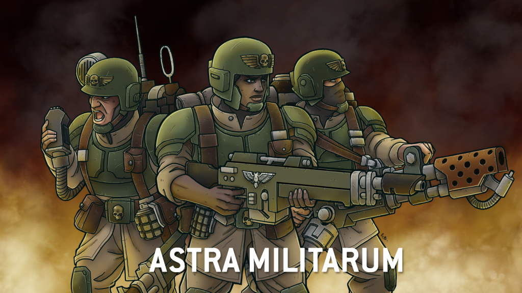 Also known as the Imperial Guard, the Astra Militarum as a fighting force of billions of regular humans recruited from millions of worlds across the Imperium, dedicated to the defense of humanity at all costs. What they lack in super strength and durability they make up for with numbers and tanks, fielding armored columns that roll into battle and steamroll enemies. The guard represent a diverse fighting force which uses combined arms to take down foes using a wide variety of versatile units.